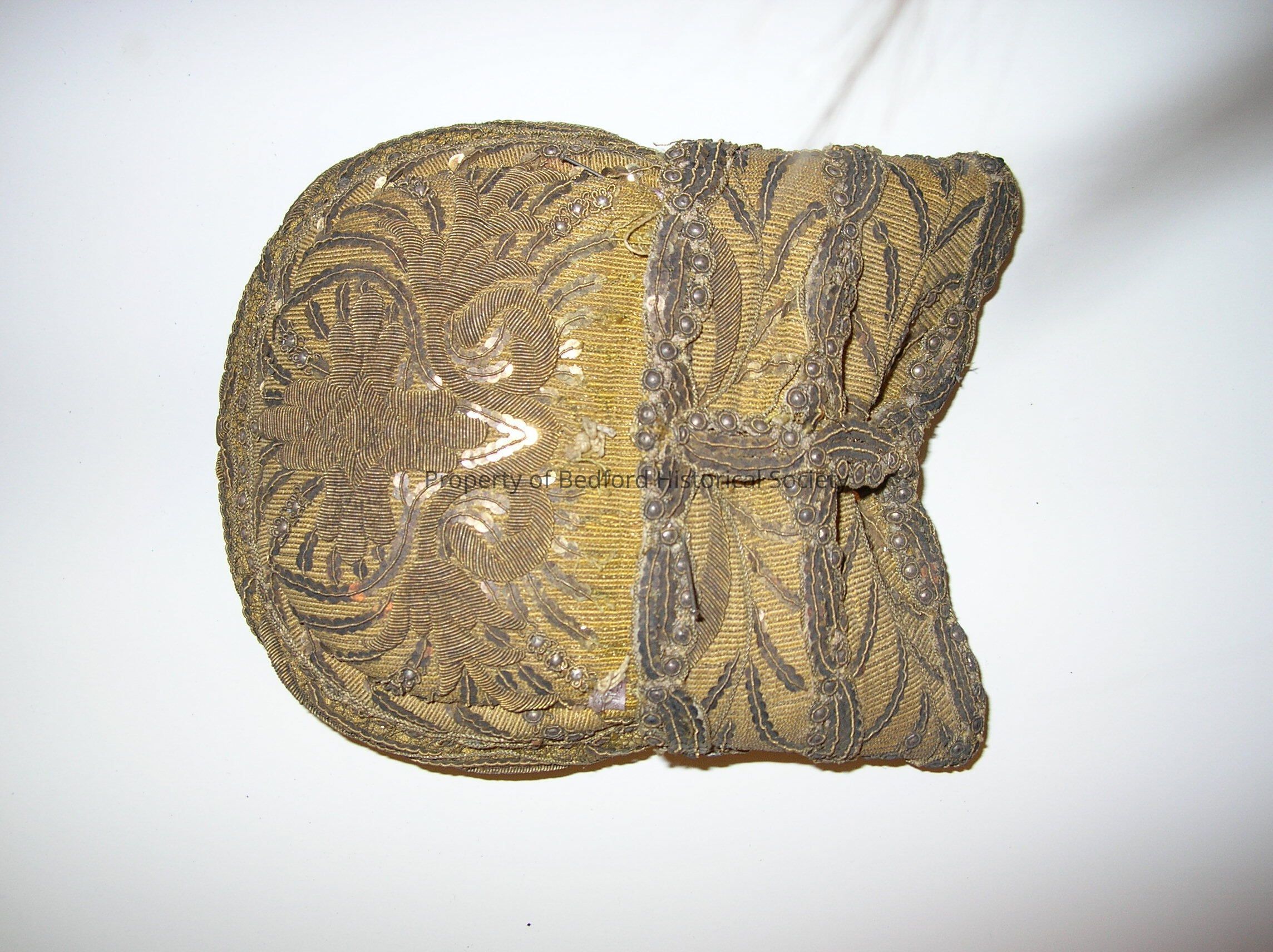 Women's hat, gold with beading and sequins, lined with floral cotton *in two pieces *has pins stuck into it