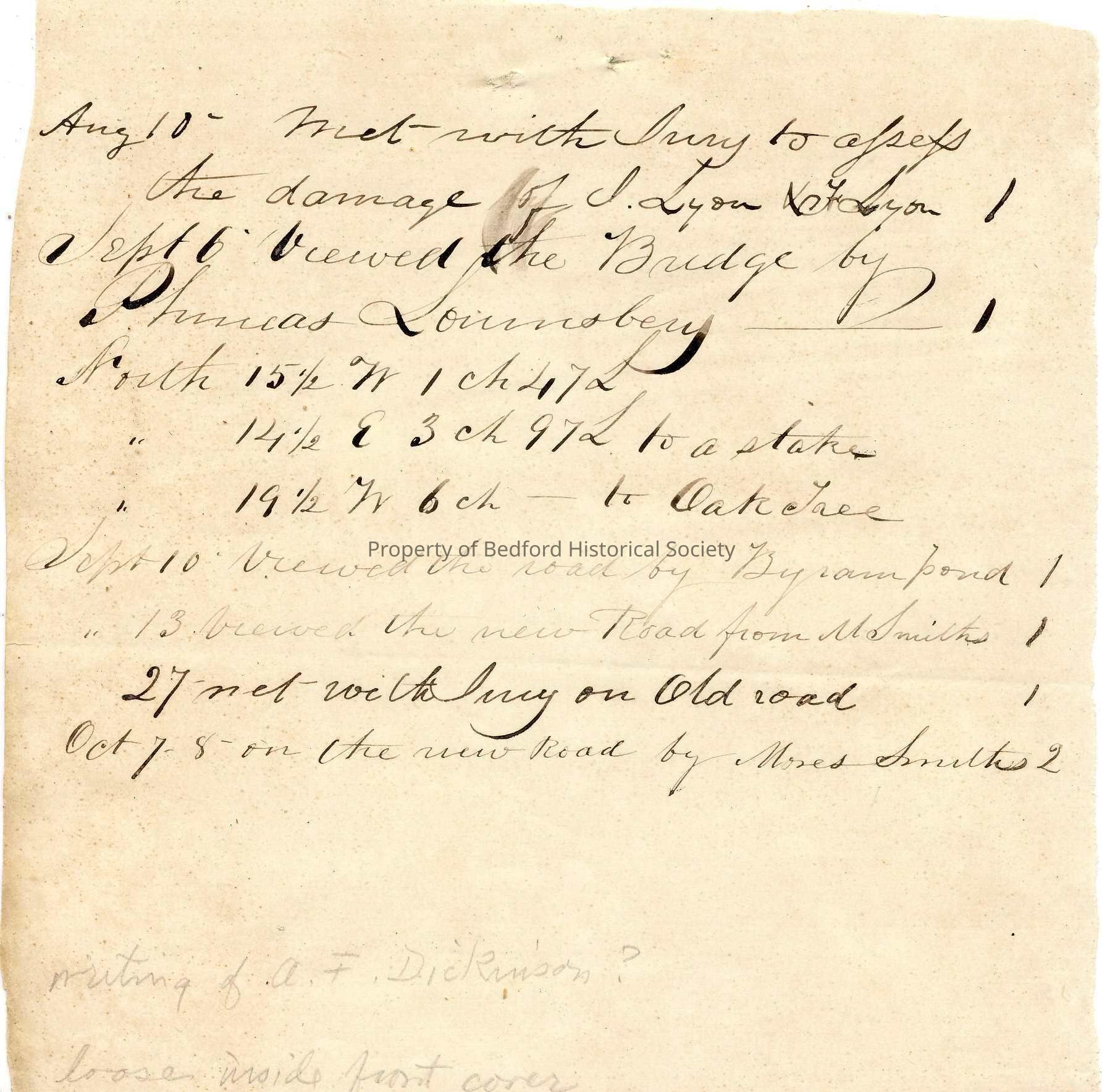 Highway Memorandum by A.F. Dickinson, circa 1840 *Arnell F. Dickinson was a highway commissoiner from 1840-1841 **found in Dickinson and Dickinson Daybook