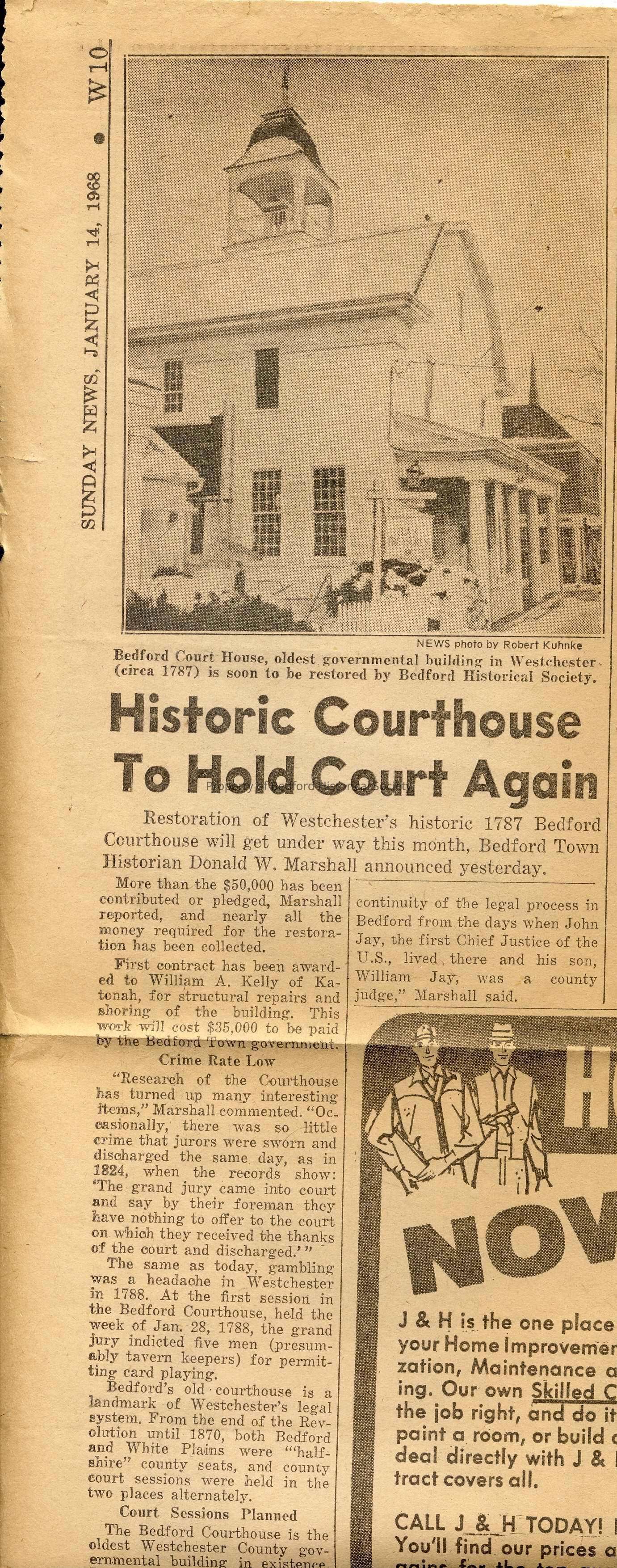 Article about the beginning of the Court House restoration, 1968