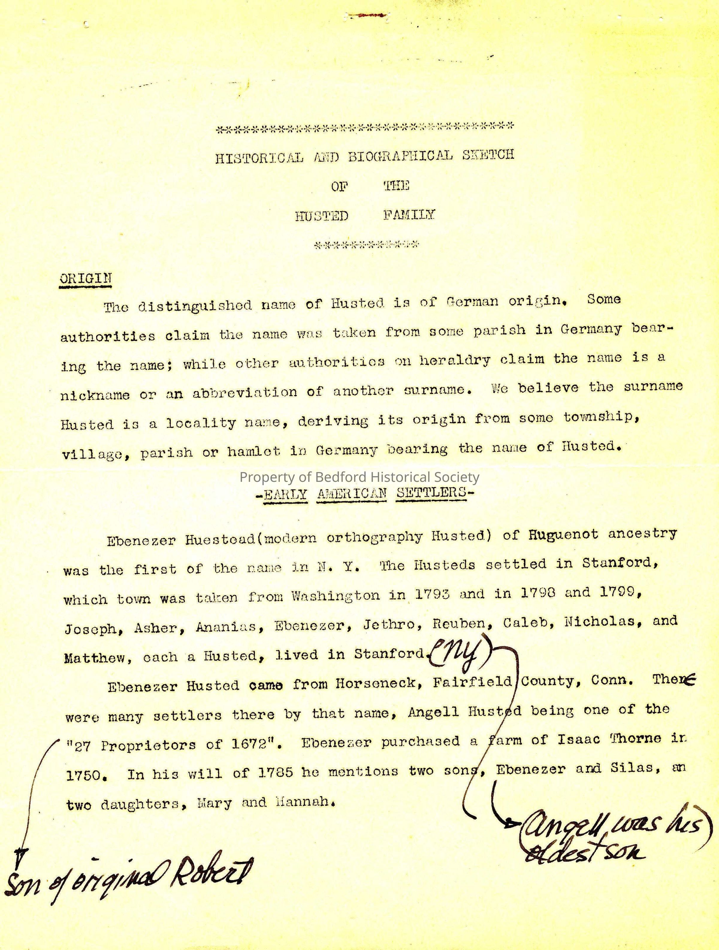 Historical and Biographical Sketch of the Husted Family