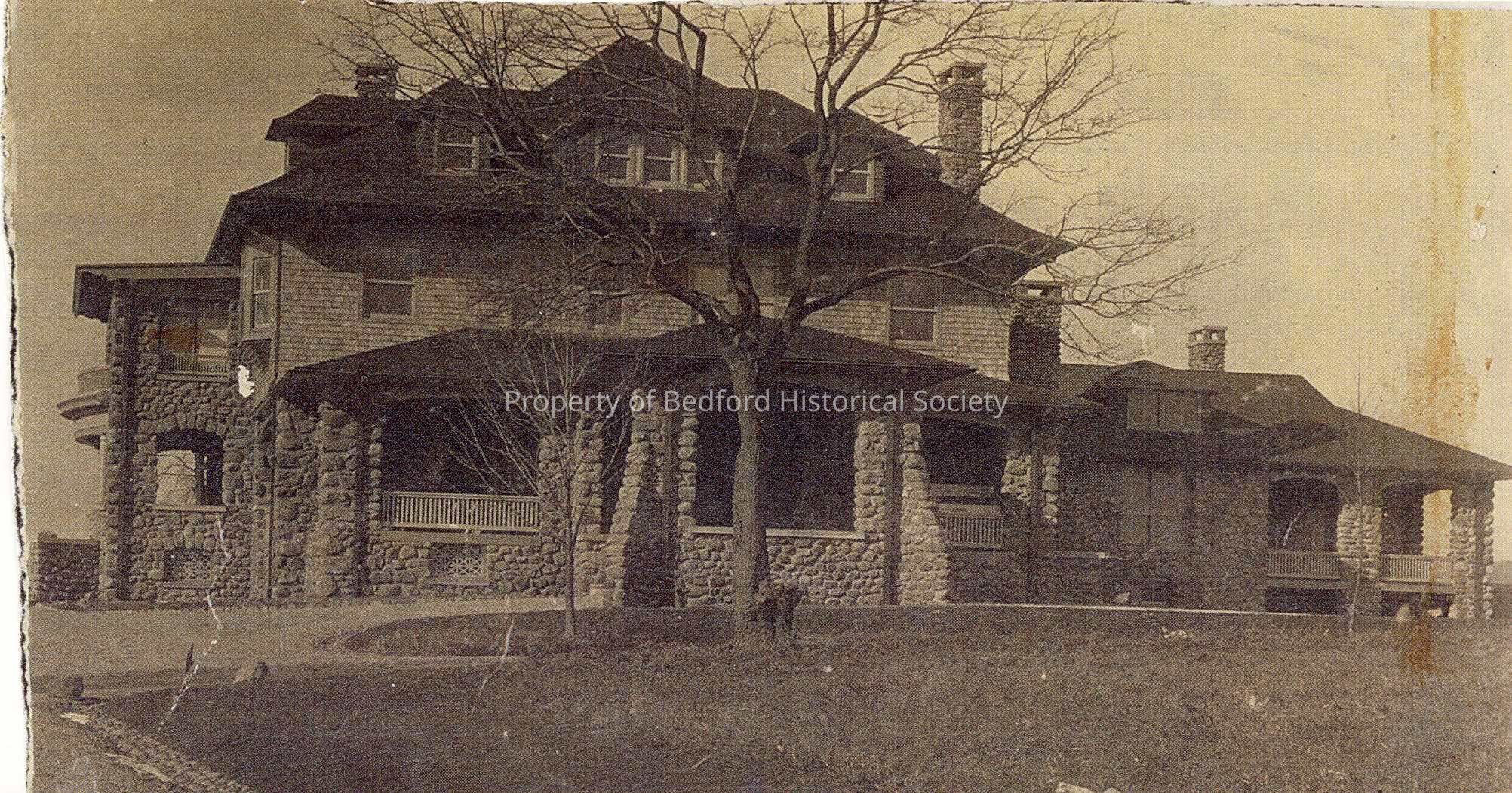 The home of Percy Pines Lewis around 1910. It was located just up Route 121 opposite Seminary Road. There are still big iron gates at the entrance to the estate. It is believed that a fire in the 40s or 50s destroyed it. Percy Pines Lewis is said to have been from Texas.