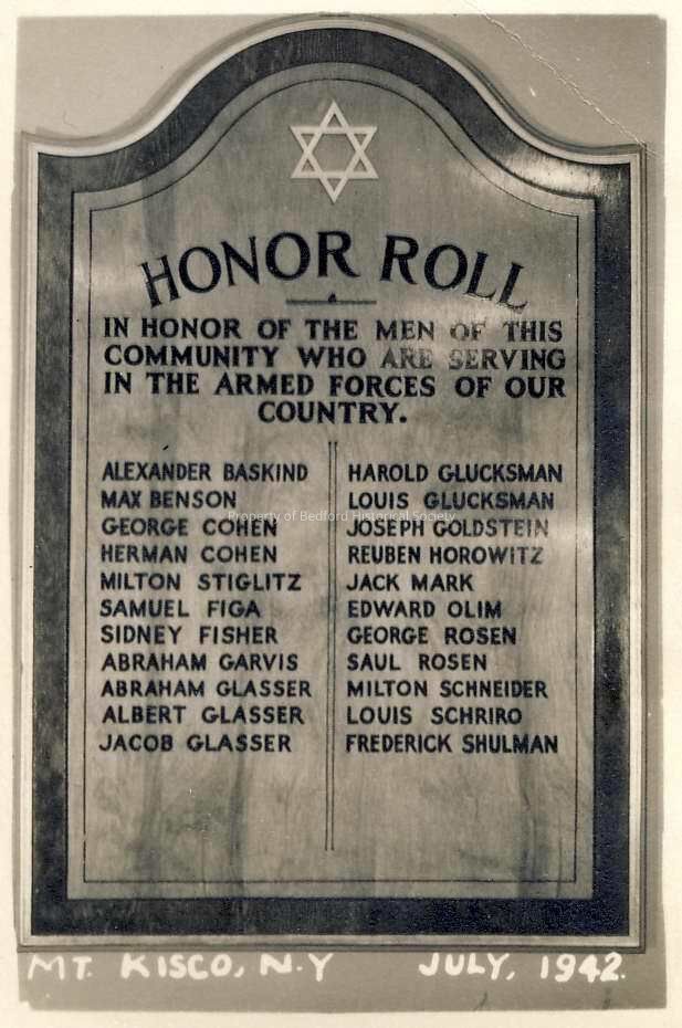 Honor Roll of local Jewish men who fought in World War II, Mt Kisco, 1942