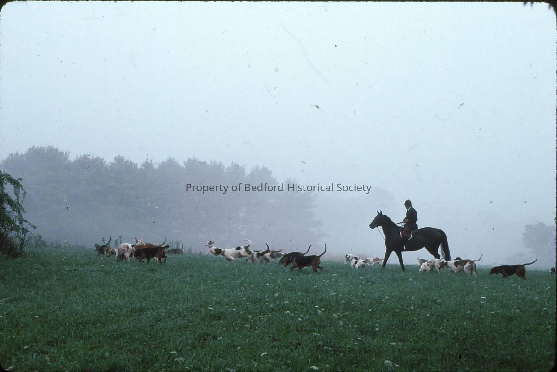 Horse and Hounds at unknown farm in October of 1991. Possibly Tanrackin farm?