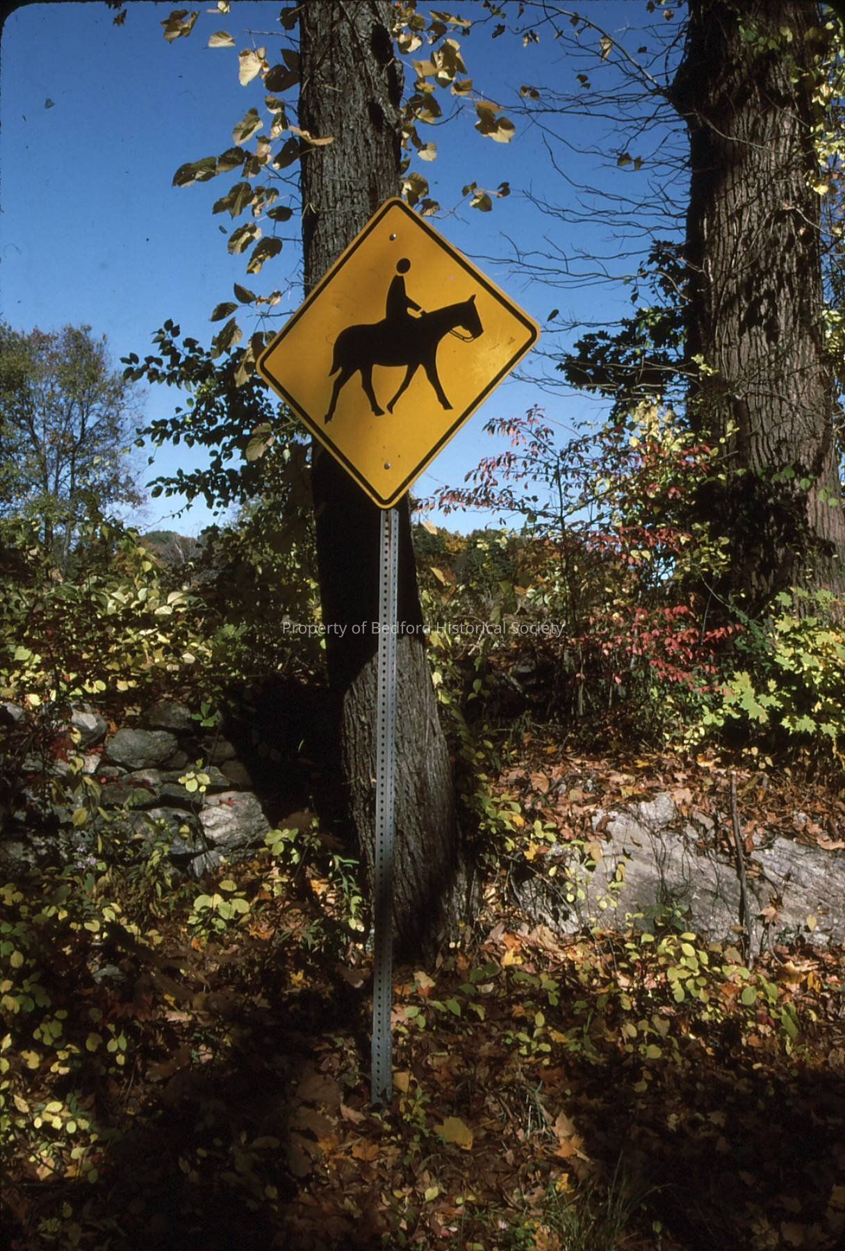 Horse Crossing sign taken in October of 1991. One of 5 identical slides (27, 28, 25, 26, 29).
