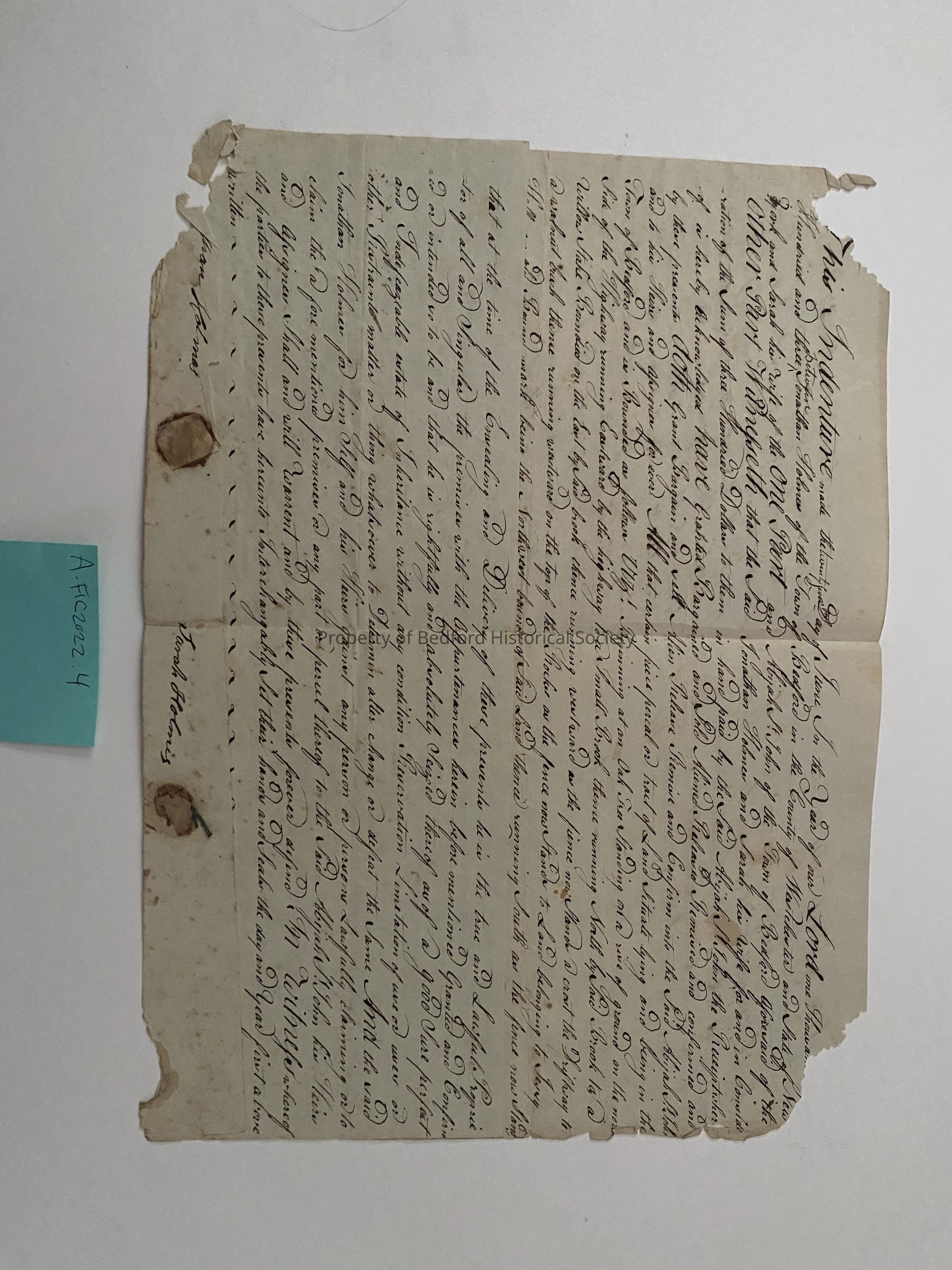 Indenture signed Jonah Holmes, 1803 hand stitched seal folded at bottom
