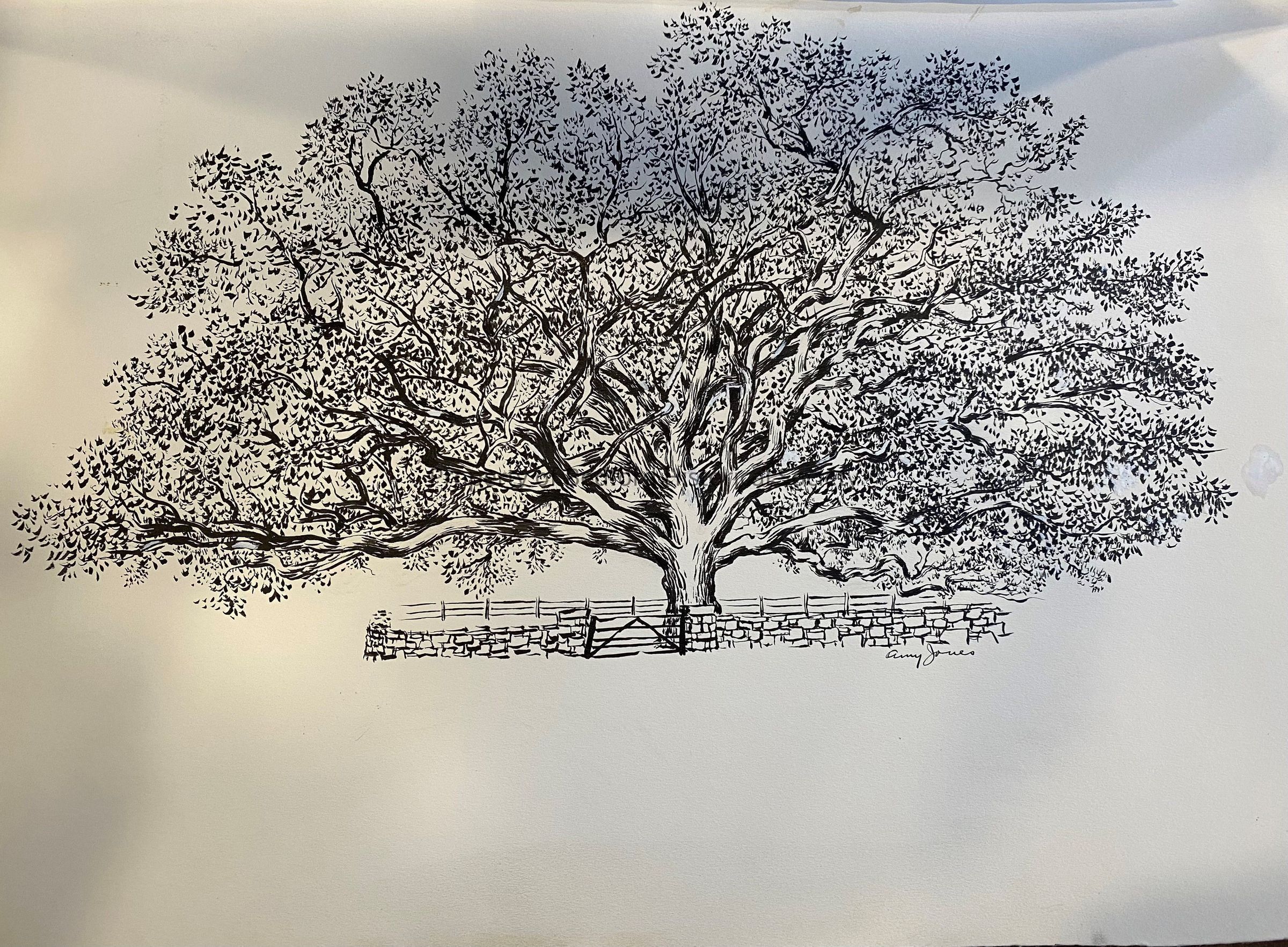 Original Ink Drawing of Bedford Oak by Amy Jones that was used for Bedford poster