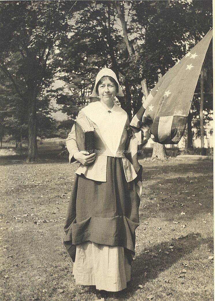 Katherine Bell Clark at 250th anniversary with the Esther Holmes Bible. Taken on the Village Green.
