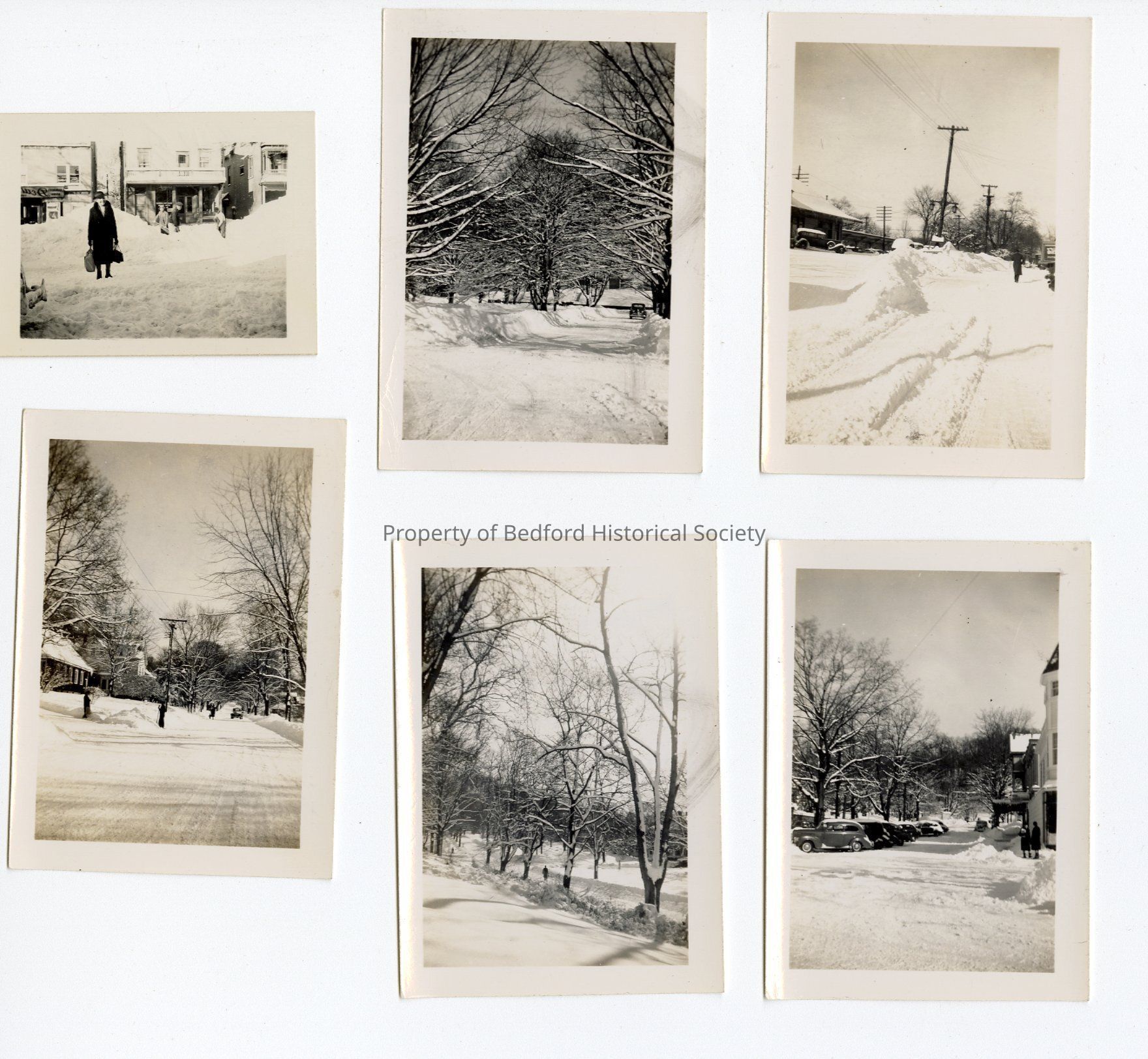 F. "Looking south on Bedford Road from (?) residence these pictures were taken after the storm of Feb 8th (lower middle)