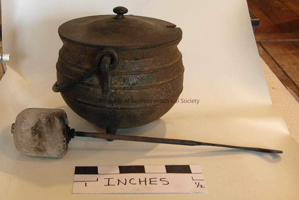 Iron kettle with cover, handle, and soapstone with handle