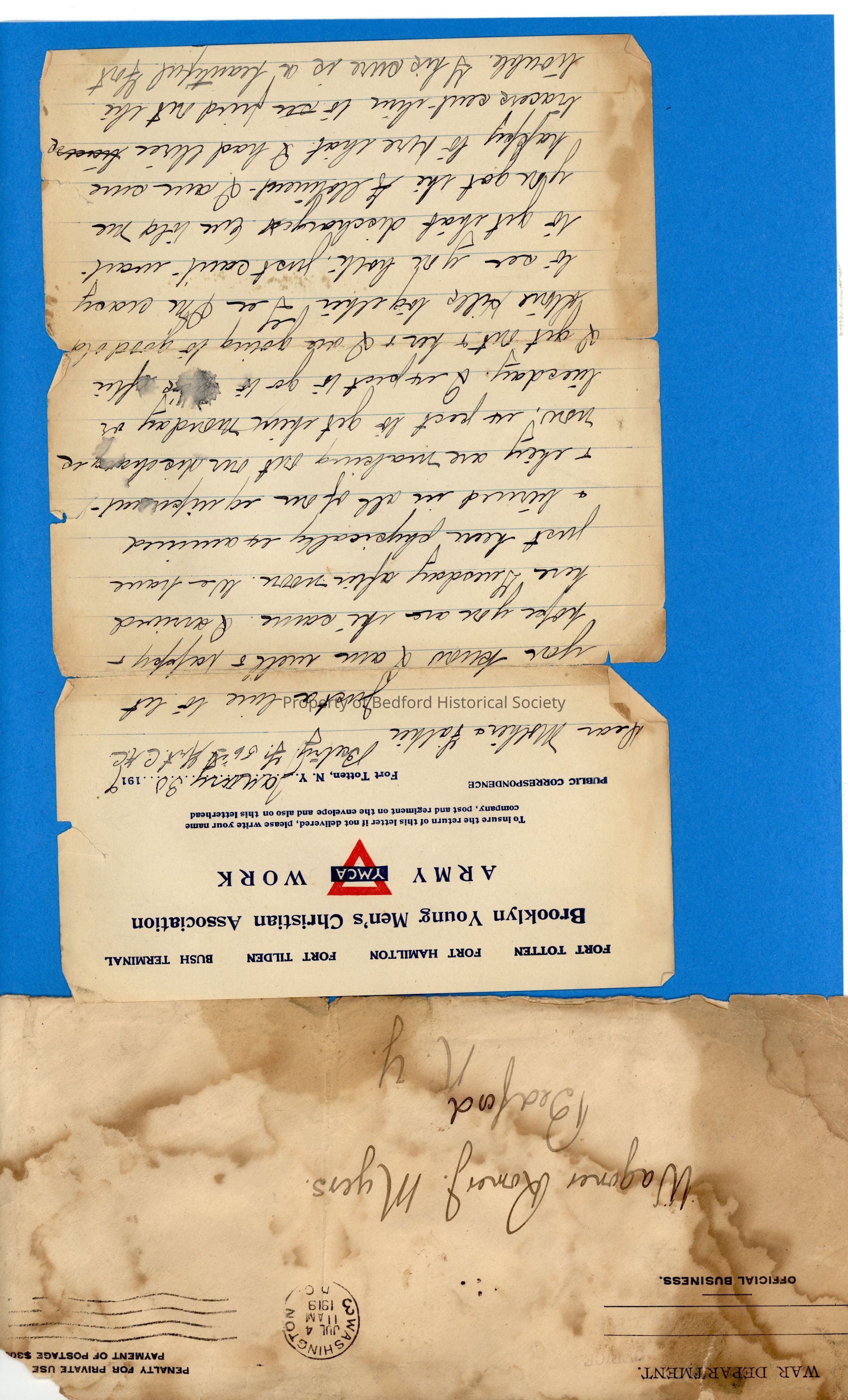 1 of 7 letters from Romer J. Myers to his parents in Bedford from 1915-1919, while he was serving in the army during World War 1 in France.