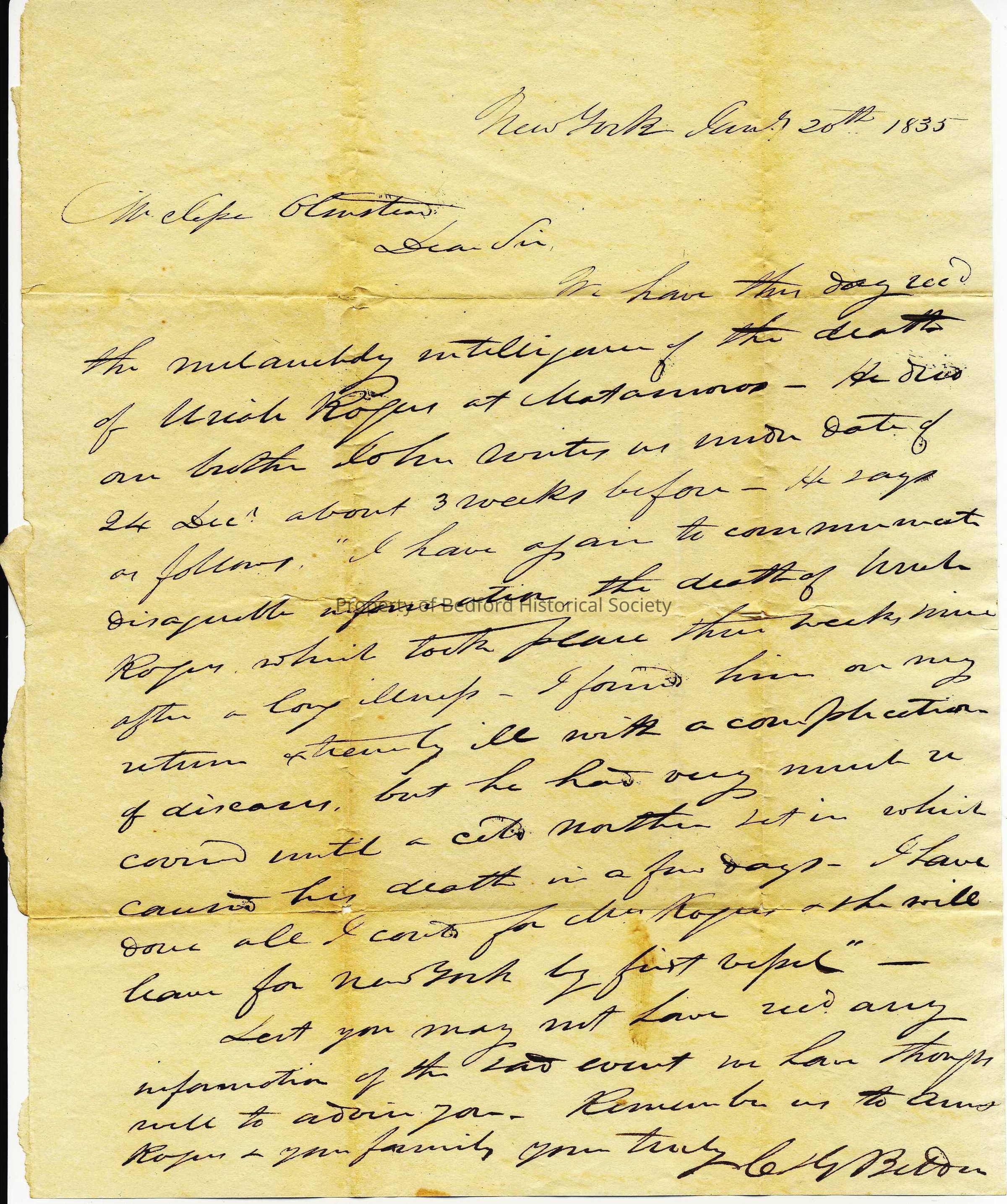 Letter from C. Belden dated Jan. 20, 1835