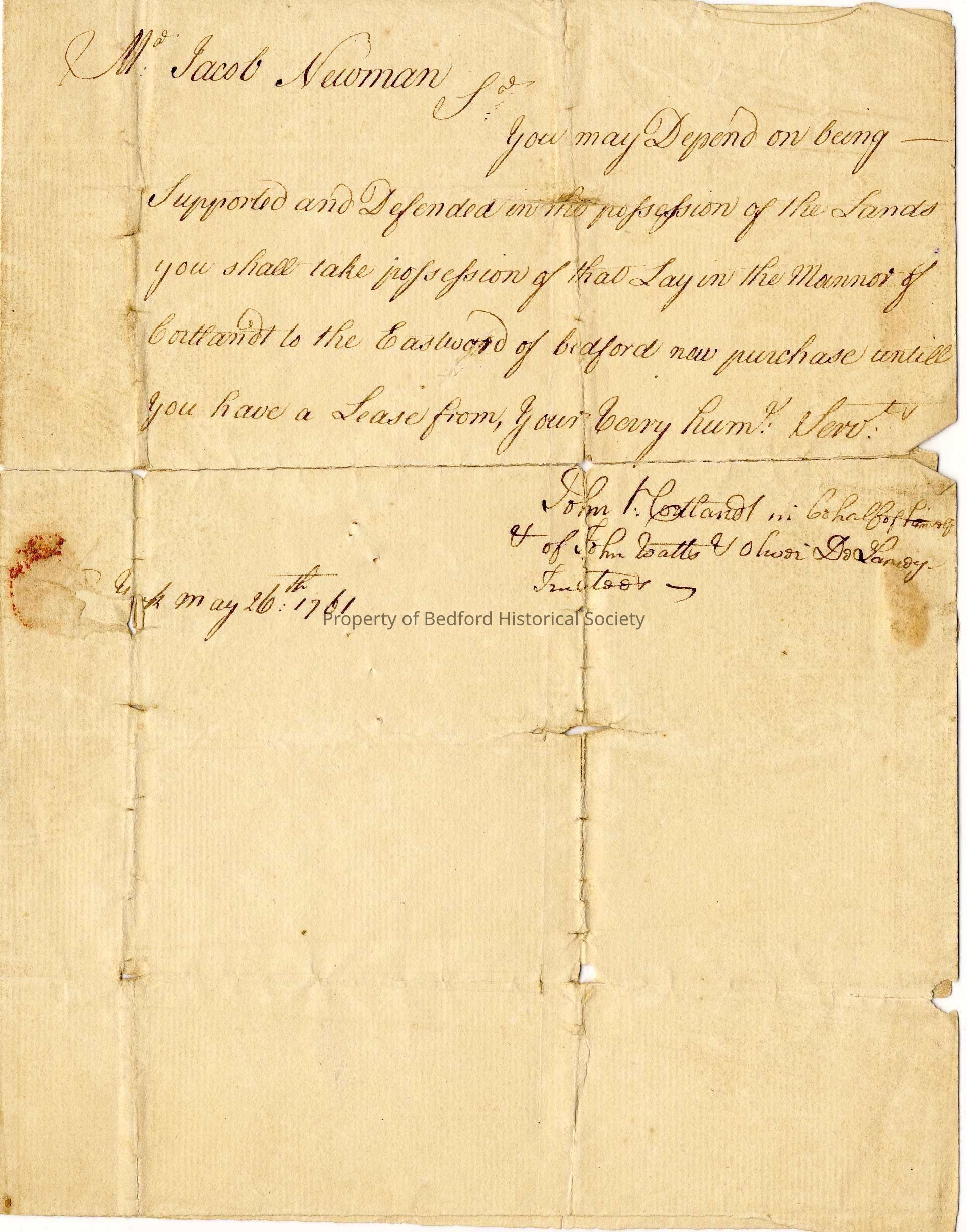 Letter to Jacob Newman from John Cortlandt, 1761Entry/Object ID
