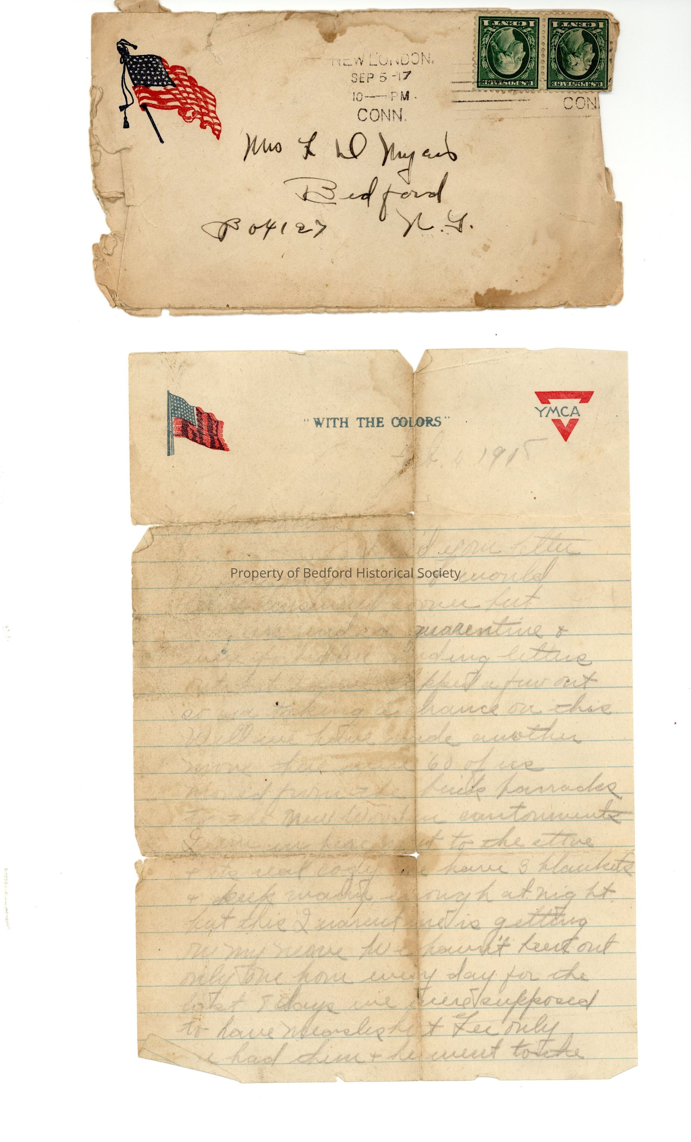 1 of 7 letters from Romer J. Myers to his parents in Bedford from 1915-1919, while he was serving in the army during World War 1 in France.