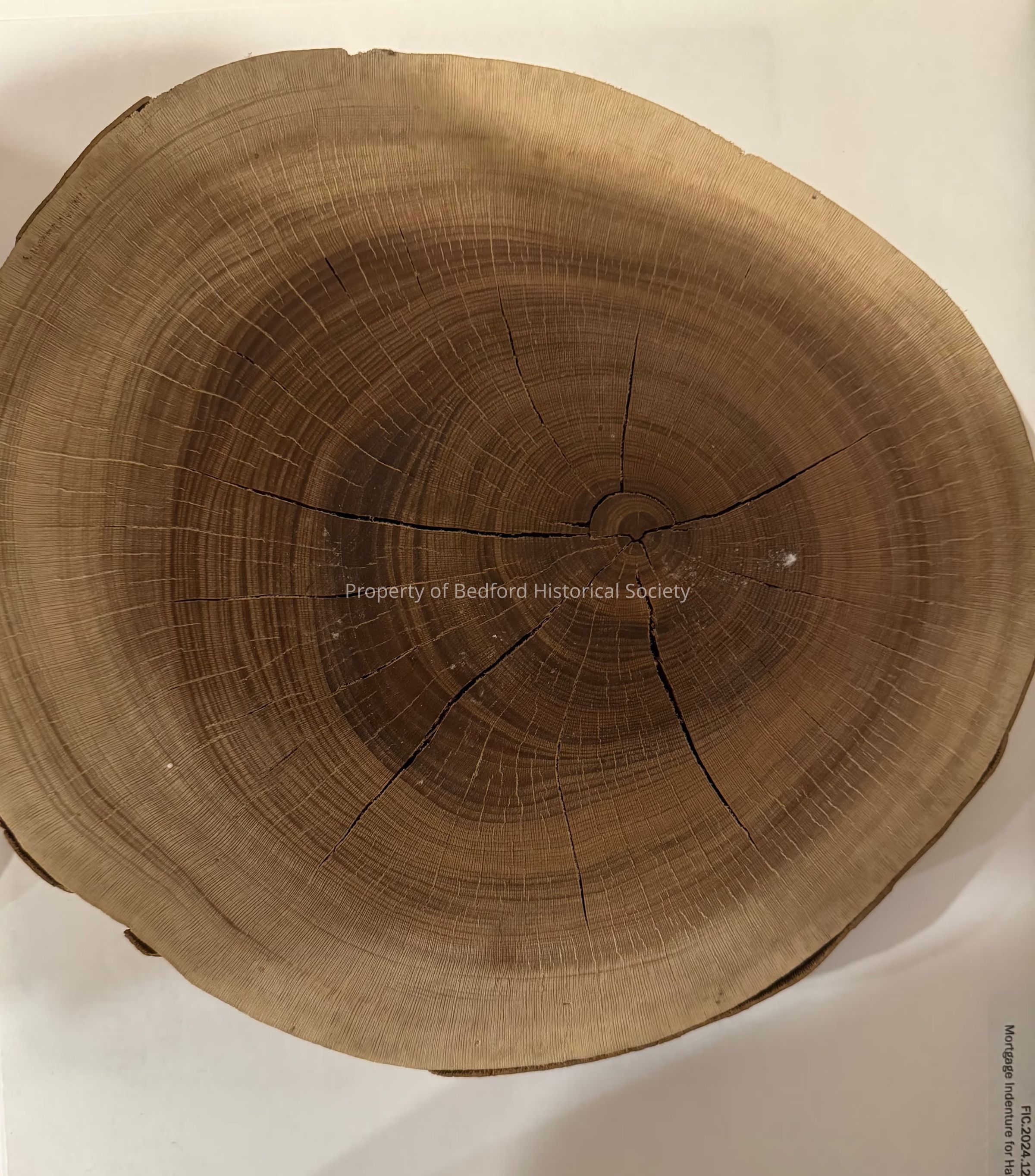 Log from the branch of a large sycamore that once stood in front of the Bedford Library.