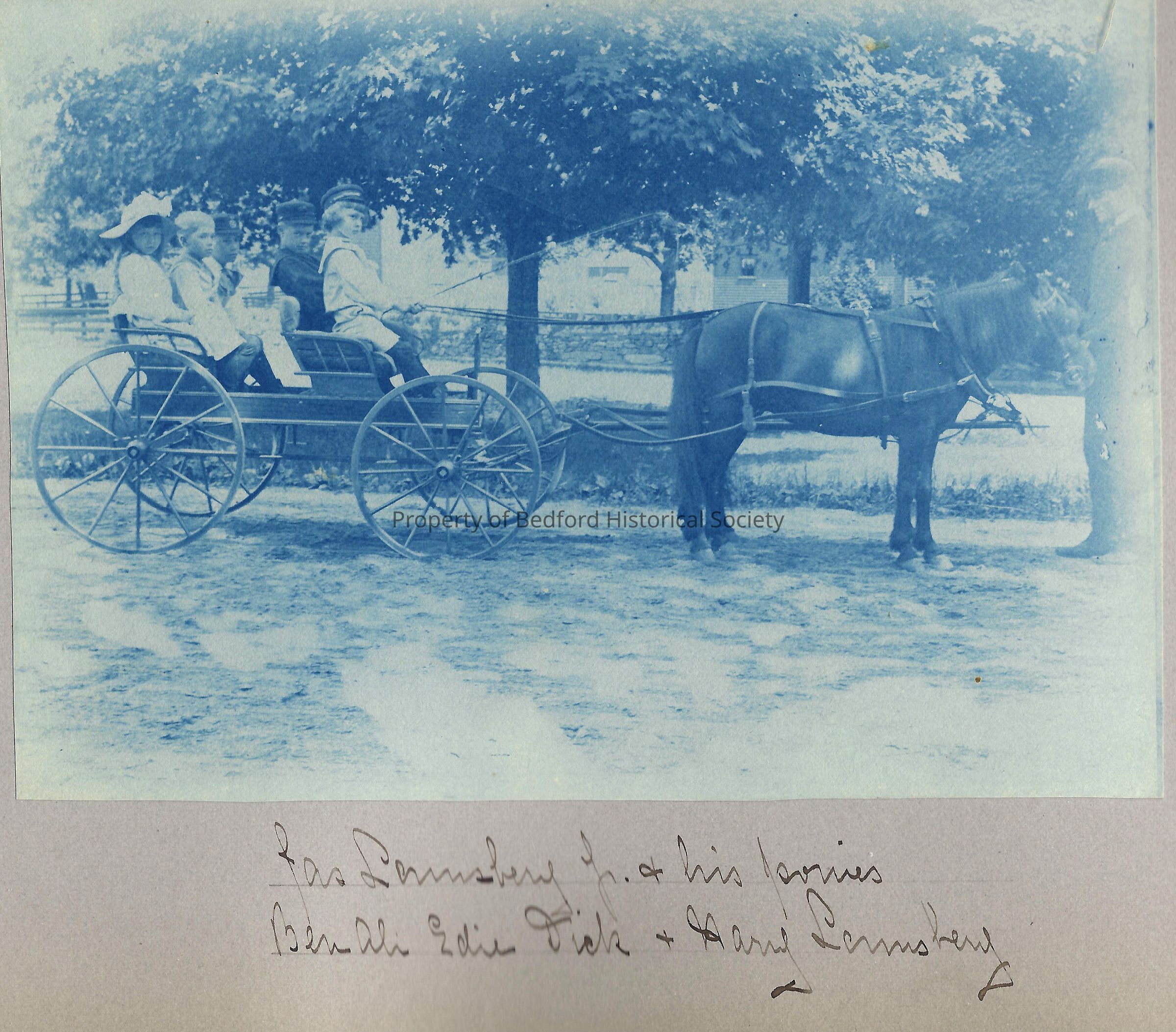 Lounsbery kids in horse drawn wagon