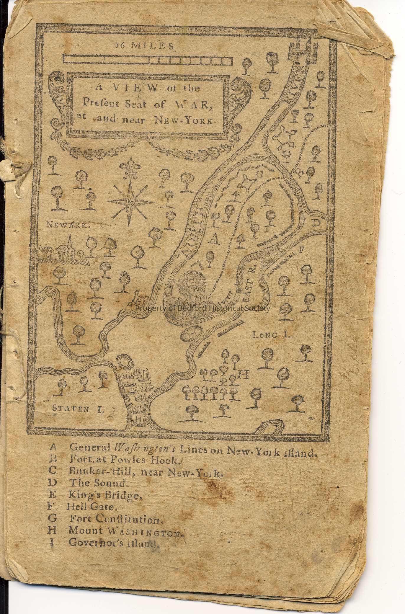 Missing cover, has 11 leaves containing a Rev. War map of New York, an address to the "Tories" dated Oct. 8, 1776, an almanac calendar, poems, fables, advice and other pieces of social and cultural interest. Provides stagecoach schedule and listings of taverns along the route.
