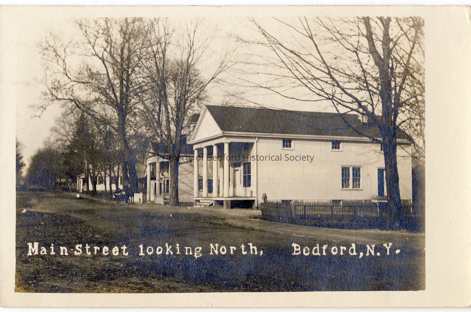 Postcard of Main Street in Bedford, NY. Addressed to Miss Margaretta Clark of Peekskill, NY.