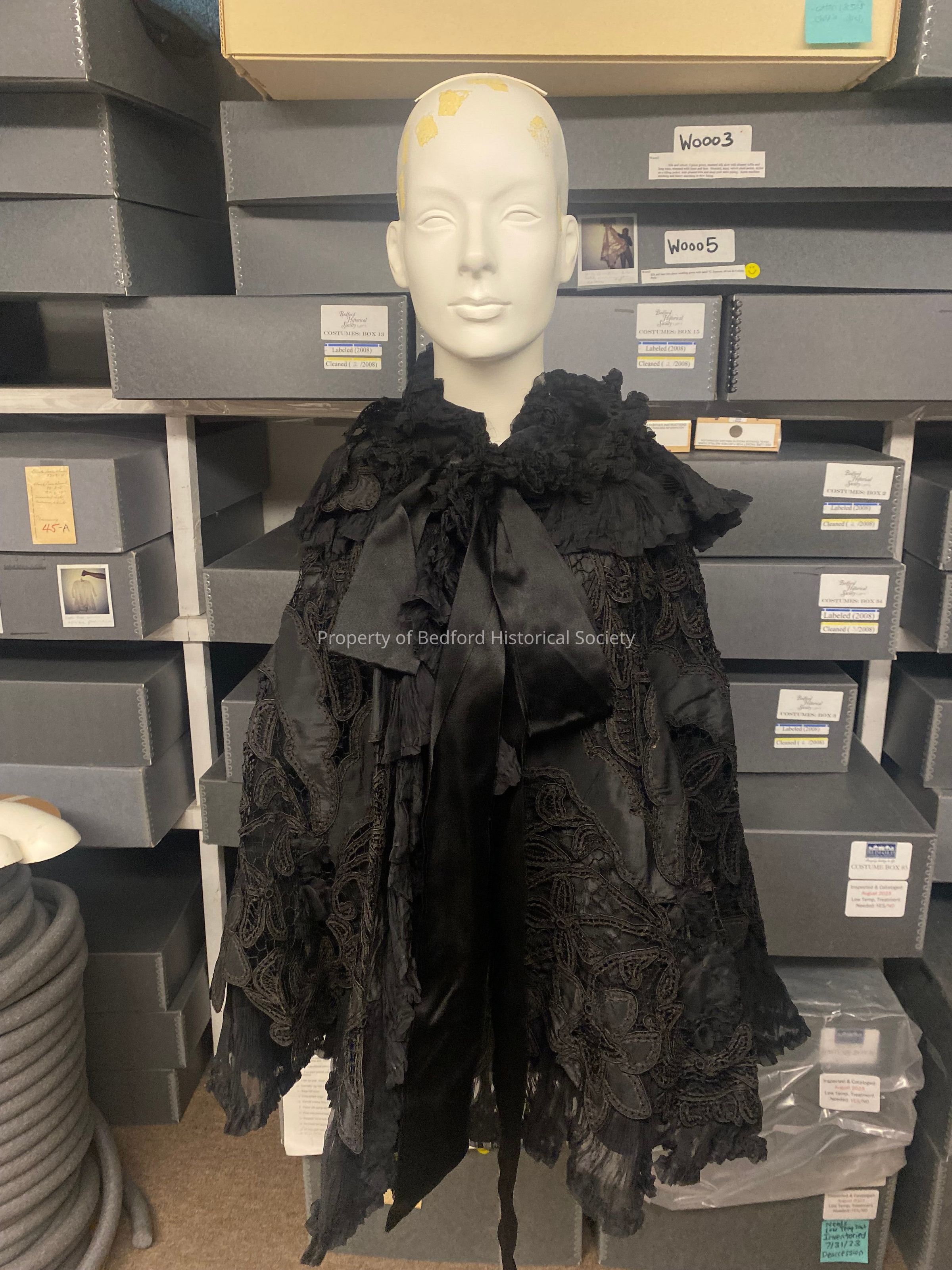 black cape or mantelet with broderie anglaise overlay and "Artus Paillard & Cie/ PARIS" label