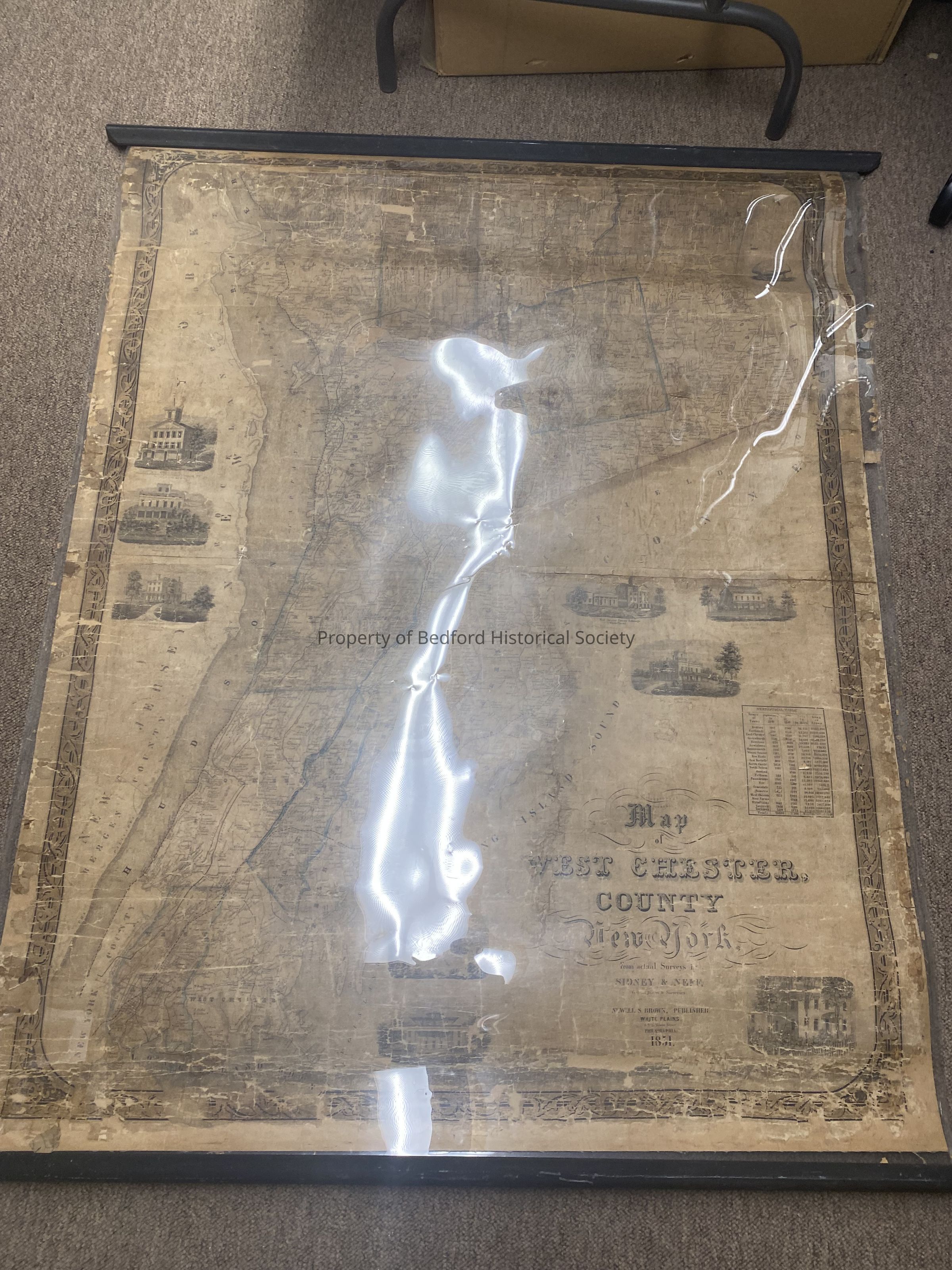 Map of Westchester County with black wooden scroll Newell S. Brown Publisher, 1851