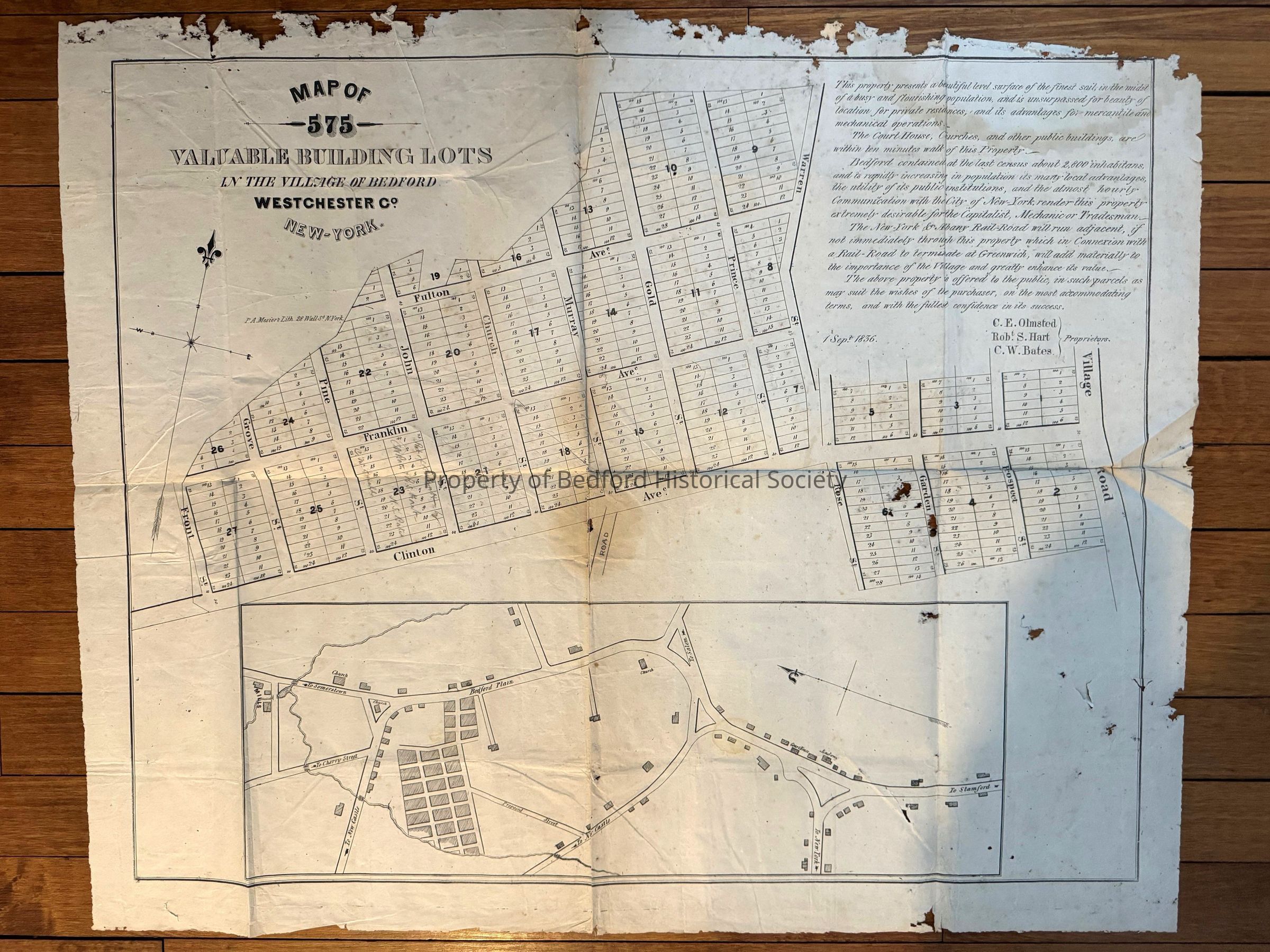 Surveyors Map 575 Valuable Building Lots in the village of Bedford Westchester Co, New York