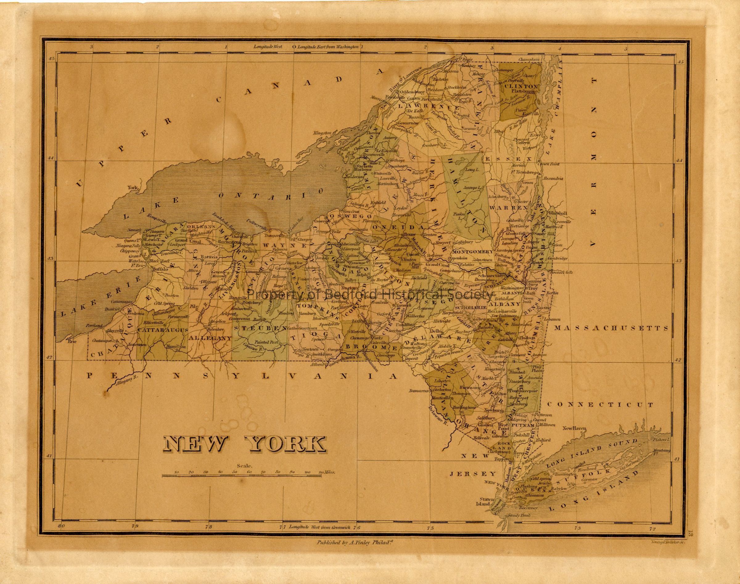Originally in frame with inscription on back "Original hand colored map by Finley, 1824"