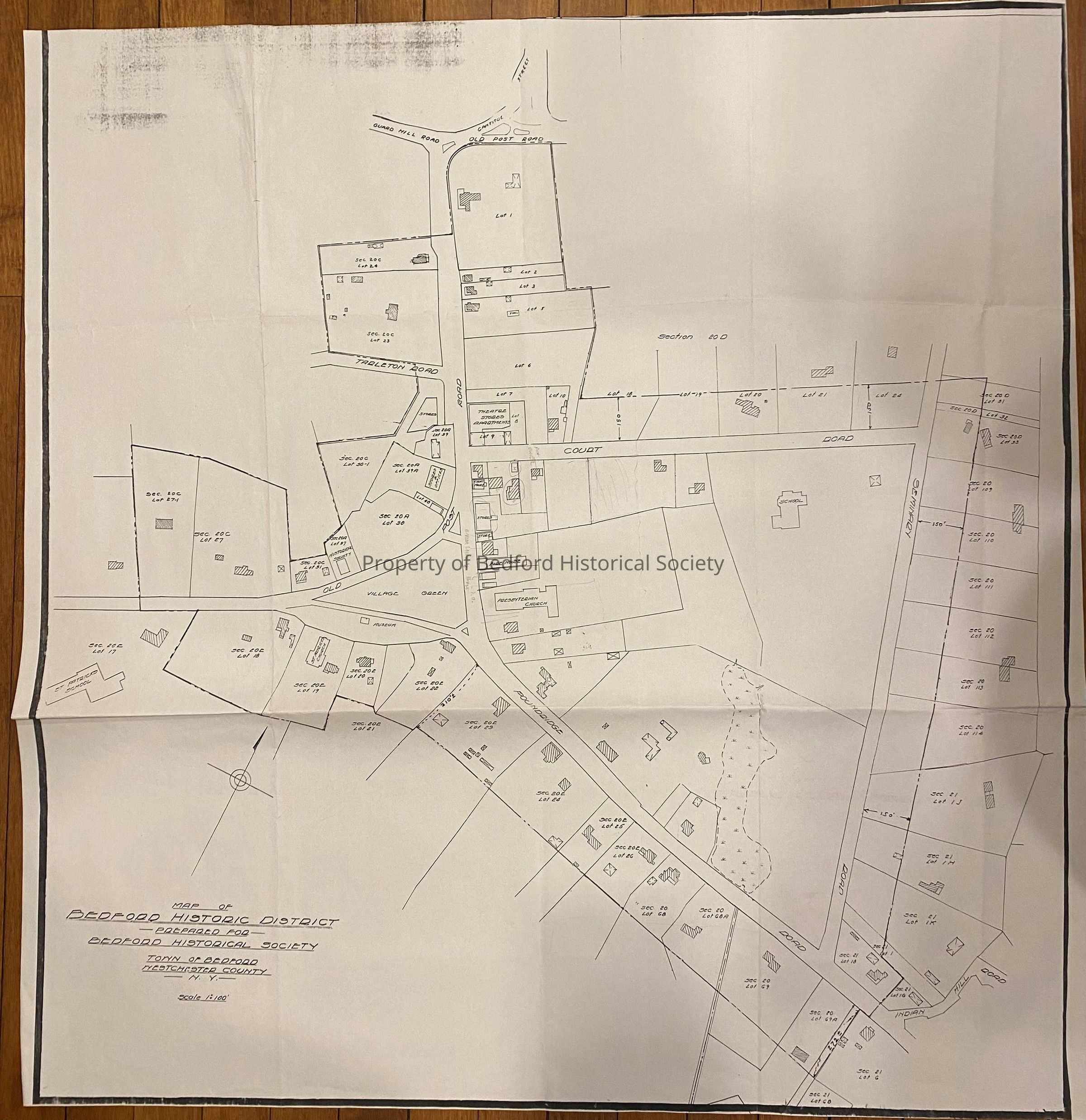 Map of Bedford Historic District, prepared for BHS, with black ink FF.2023.9