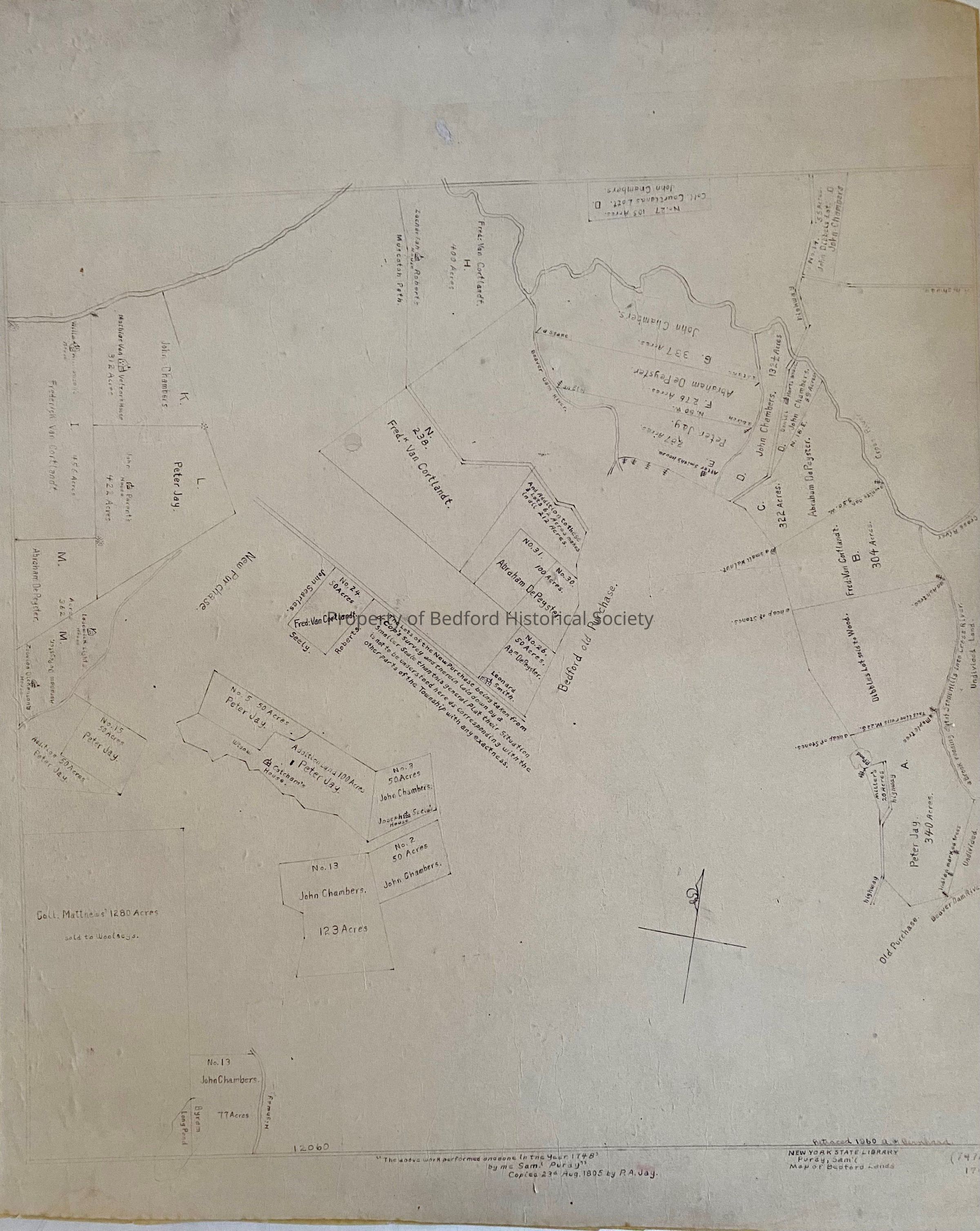 Map of Bedford lands, original 1748. 1960 Copy