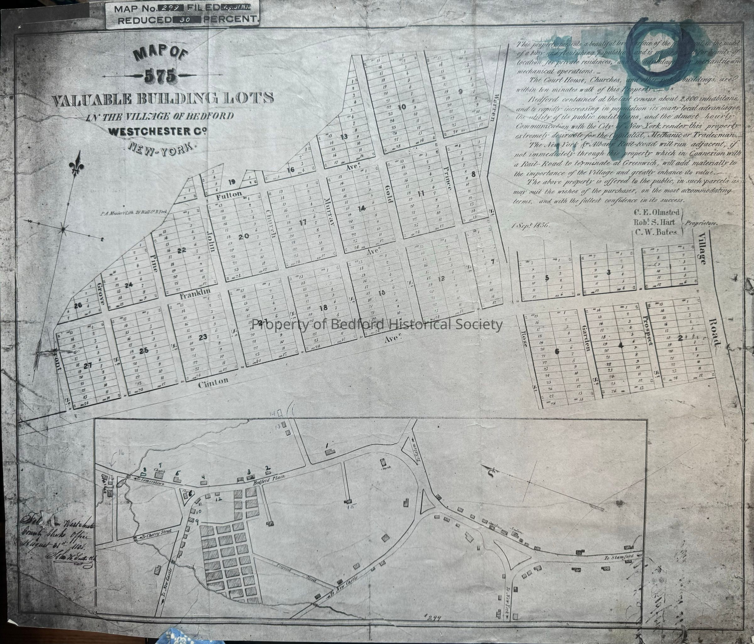Copy of map of valuable building lots in village of Bedford, September, 1836