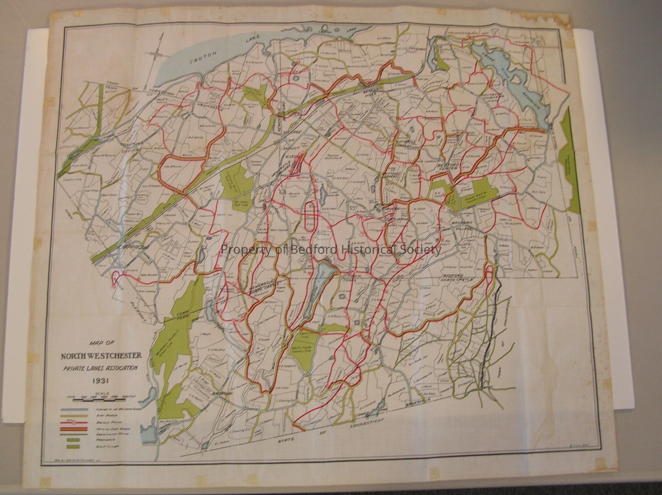 Map of Bedford Riding Lanes between many significant farms in Bedford and the surrounding area. Dated 1931.Map Details