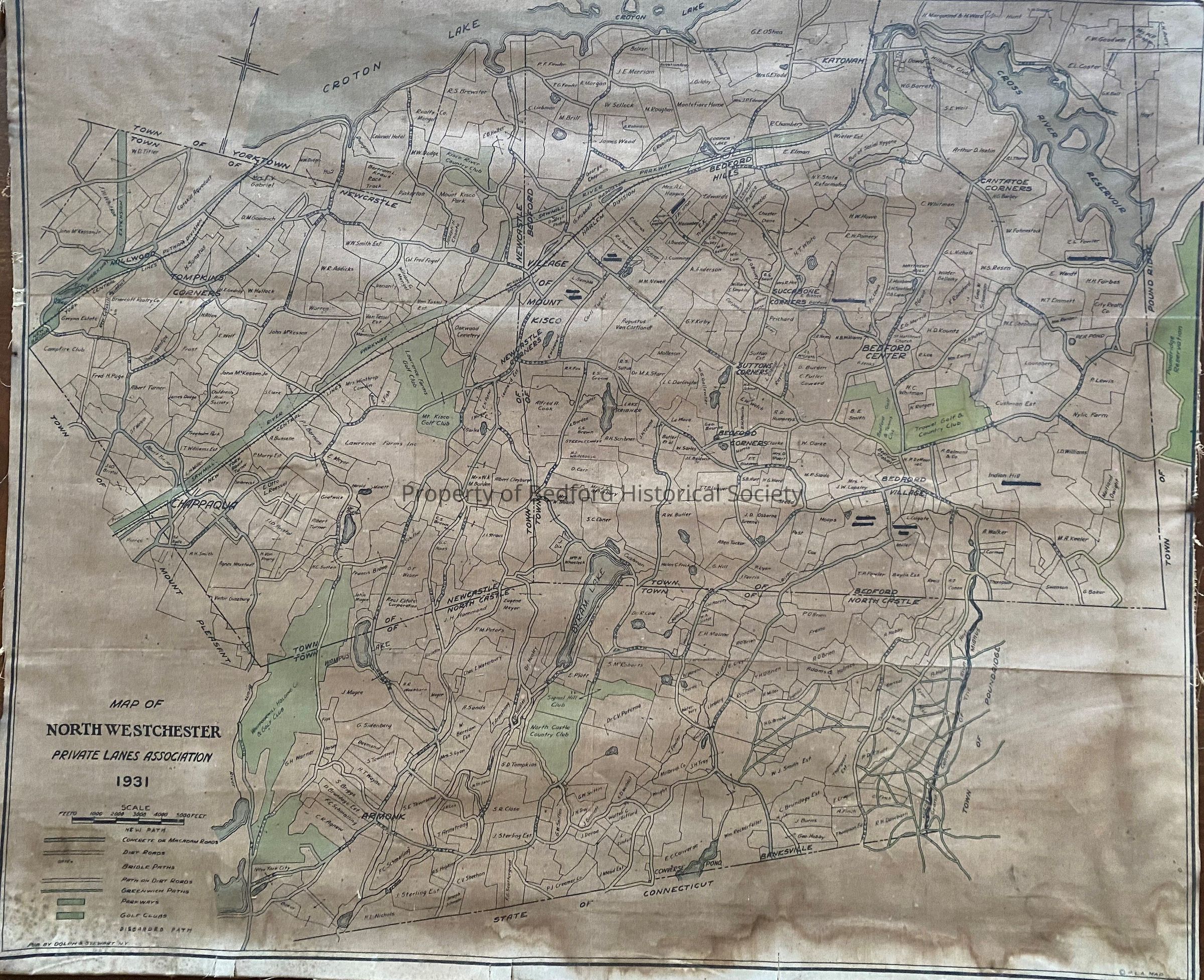canvas map of North Westchester Private Lanes Association 1931