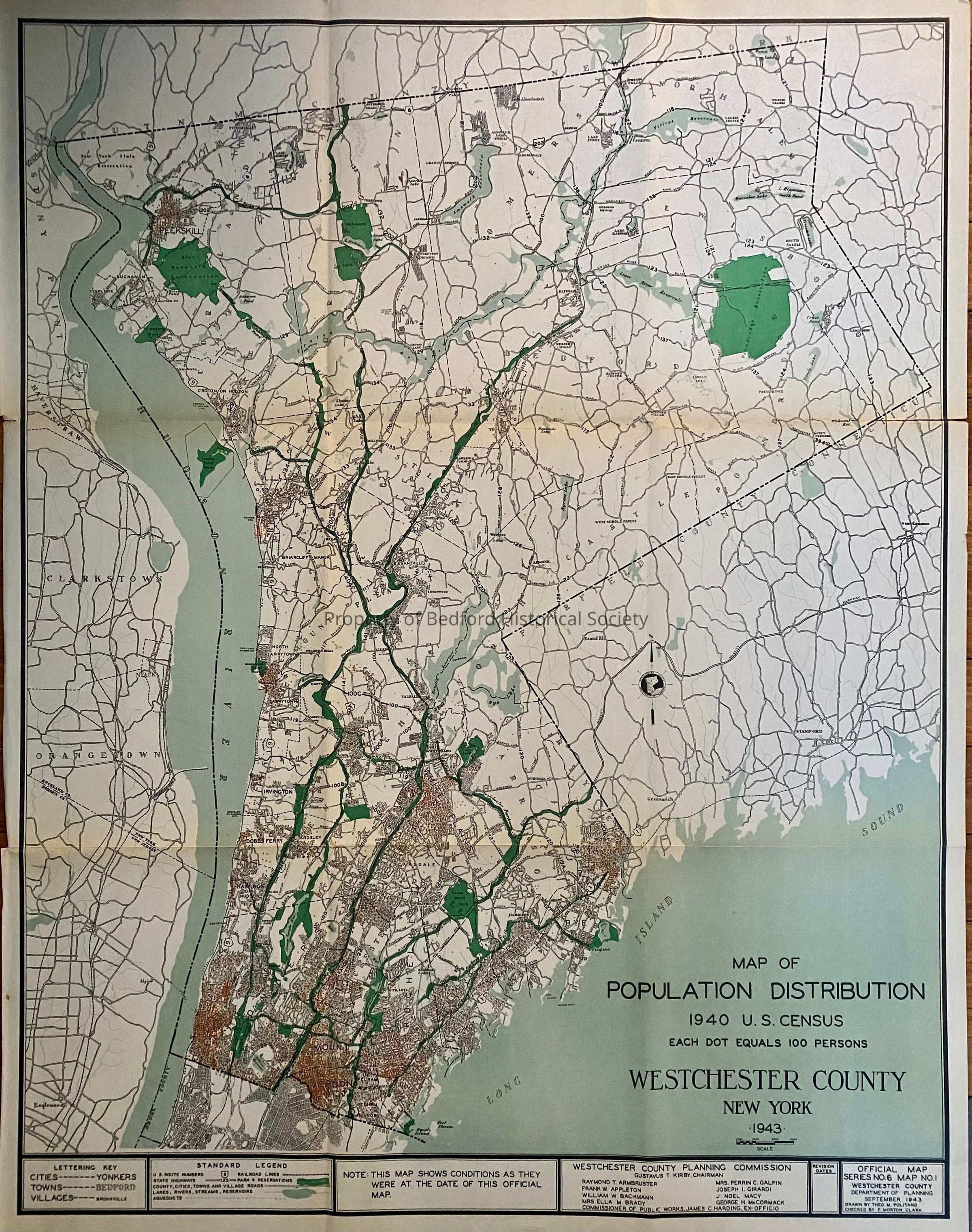 Colored map of Pop. Distribution of Westchester County, By Westchester County Planning Commission