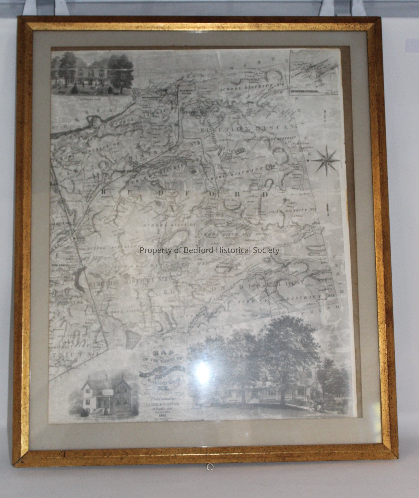 framed map of Bedford printed by Clark and Wagner