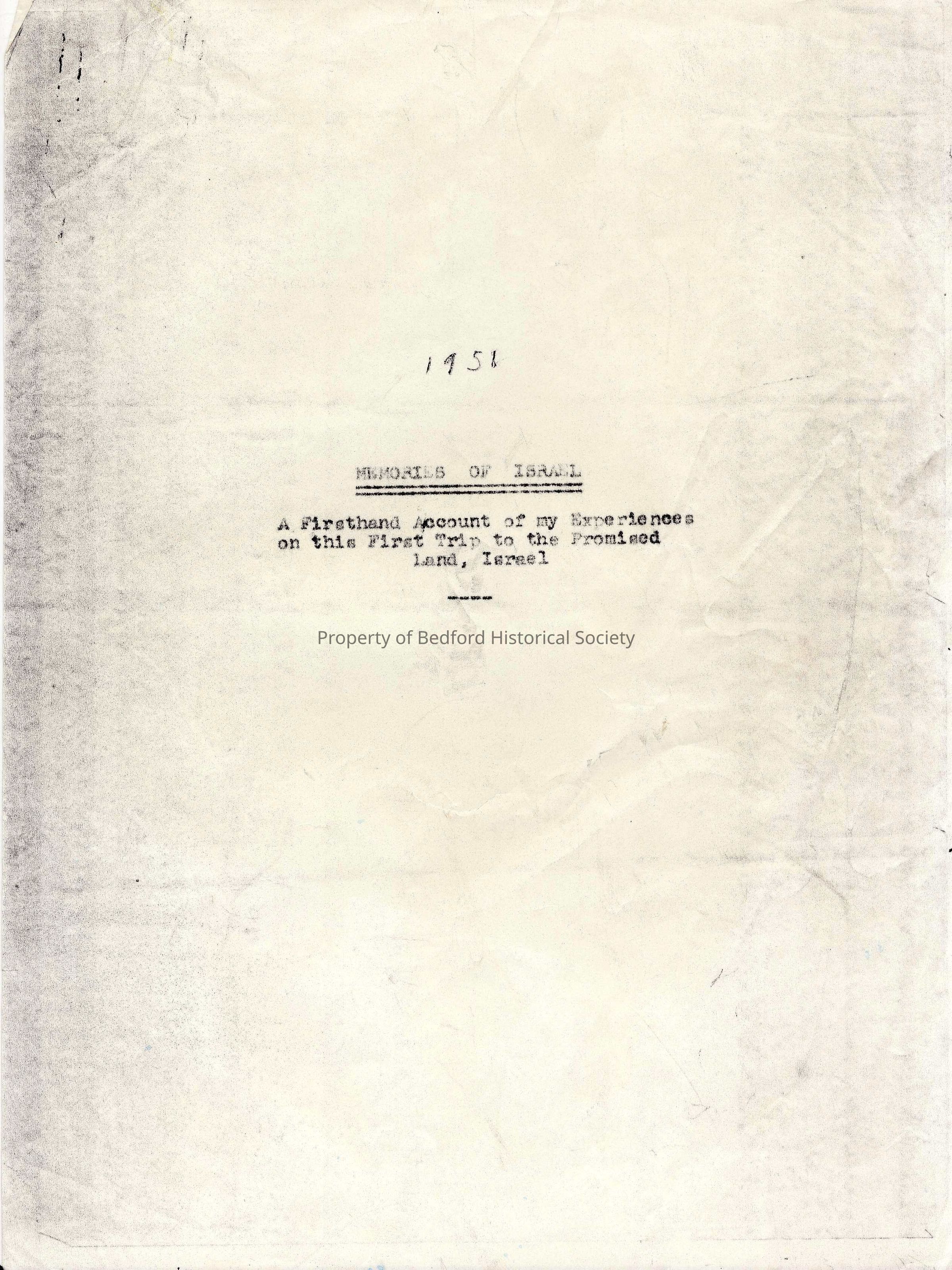 Memories of Israel: A Firsthand Account of my Experiences on this First Trip to the Promised Land, IsraelEntry/Object ID