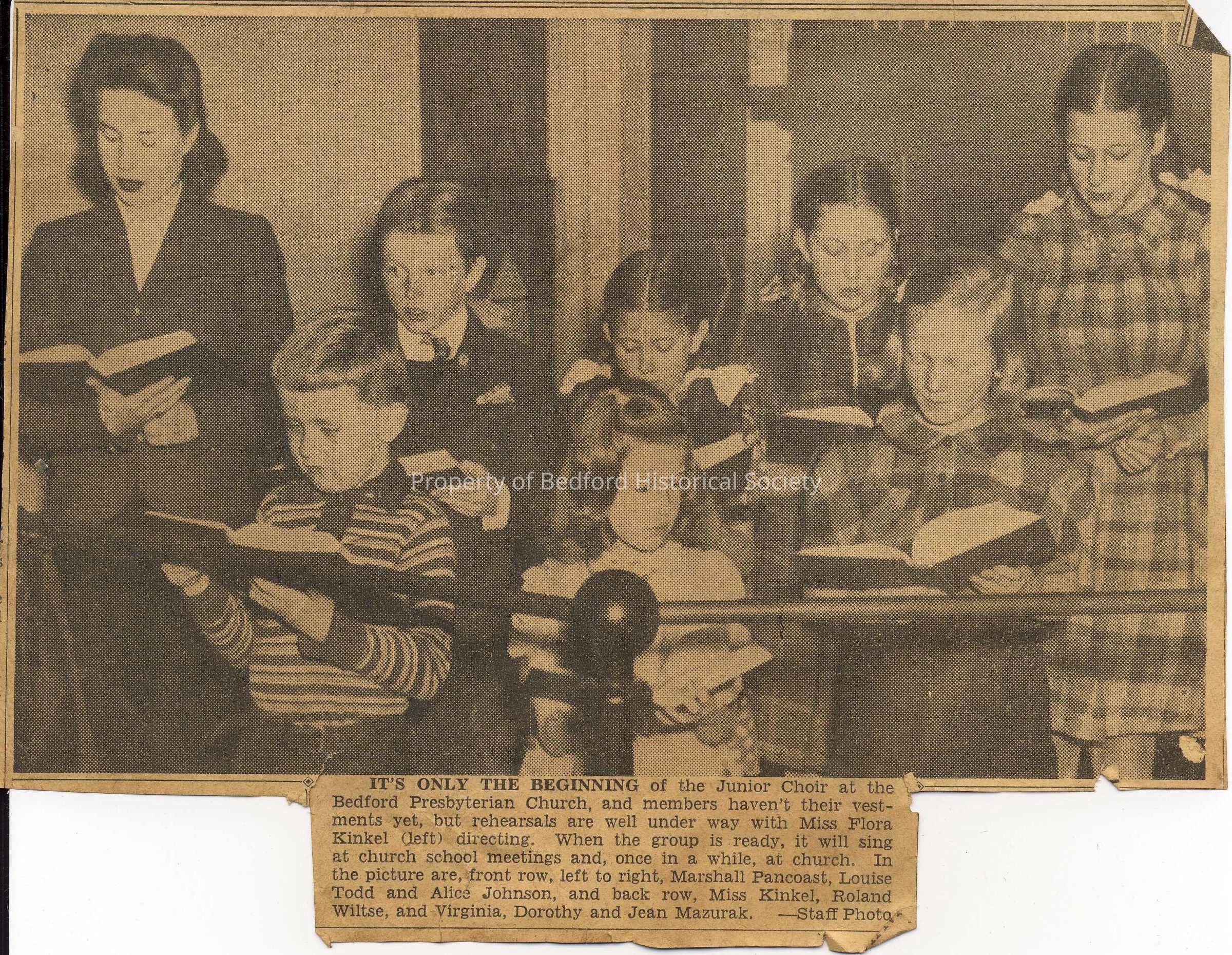 - Picture of the Junior Choir of the Presbyterian Church including Miss Flora Kinkel
