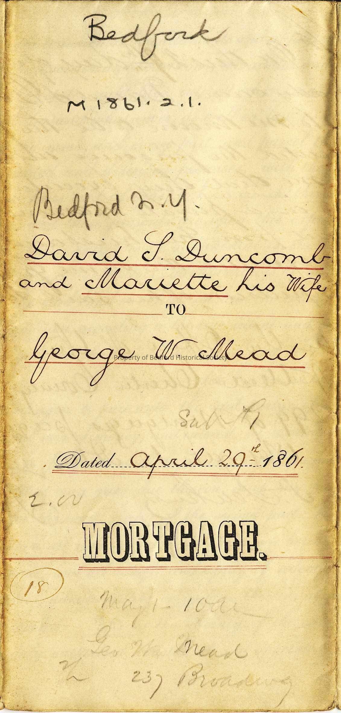 Mortgage: David L. Duncomb to George W. Mead, 1861