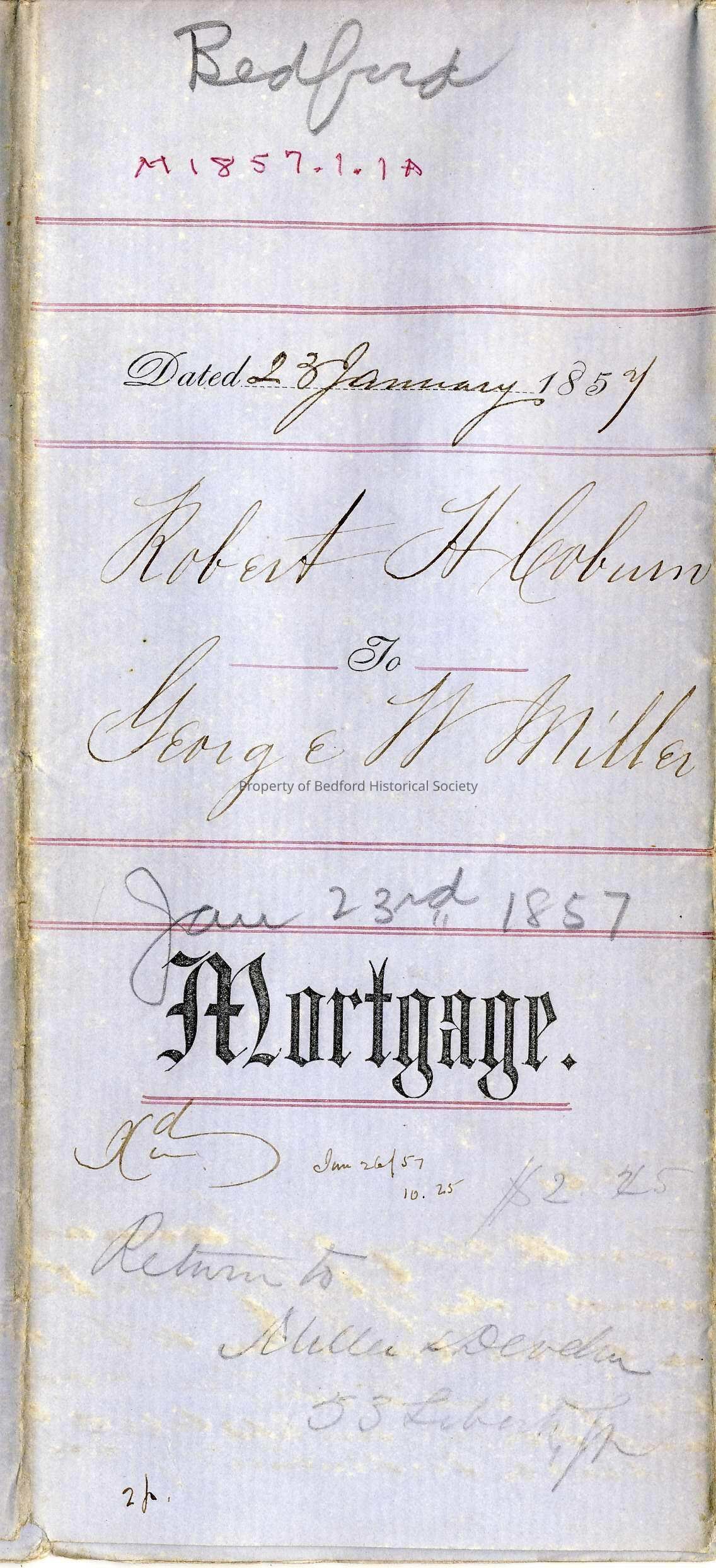 Mortgage: Robert H. Coburn to George W. Miller, 1857