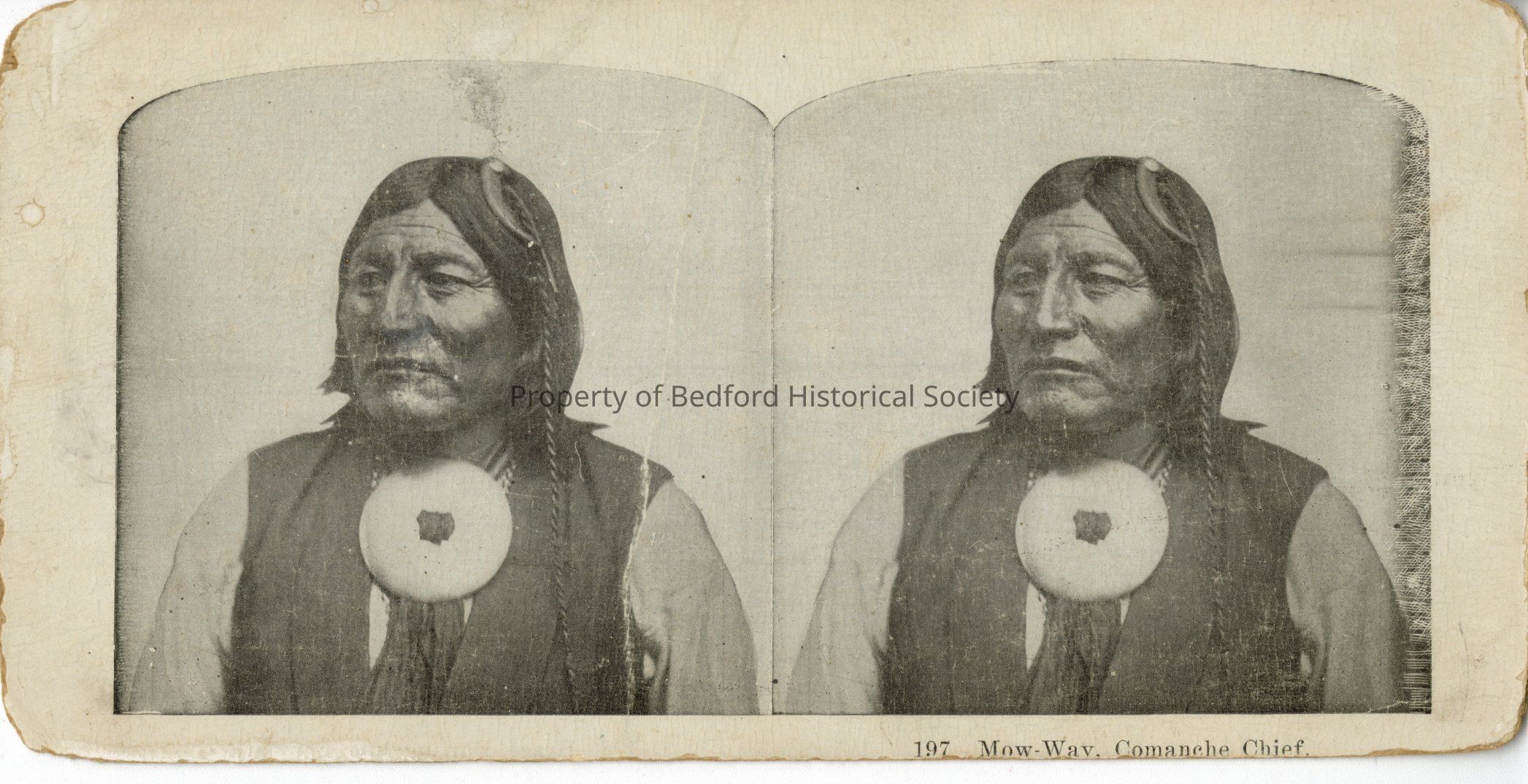B + W Stereographic card of chief Mow-Way of Comache Tribe in looking off into distance