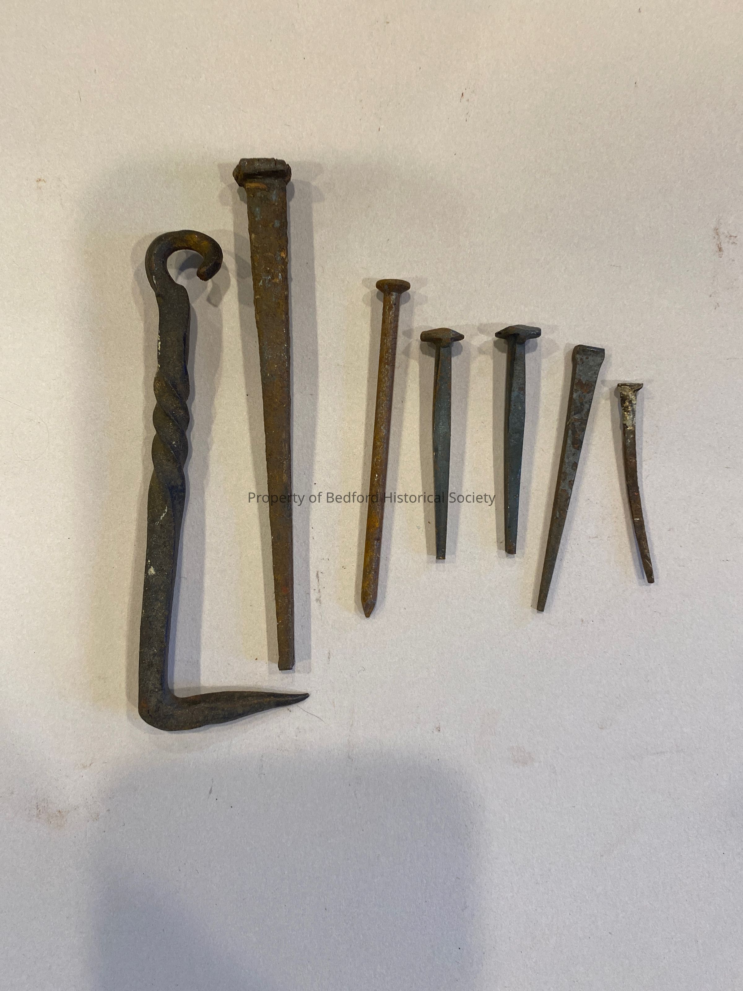 Nails found in “Way Back” attic in November 2022. Possibly pieces of original Historical Hall taken after the fire.