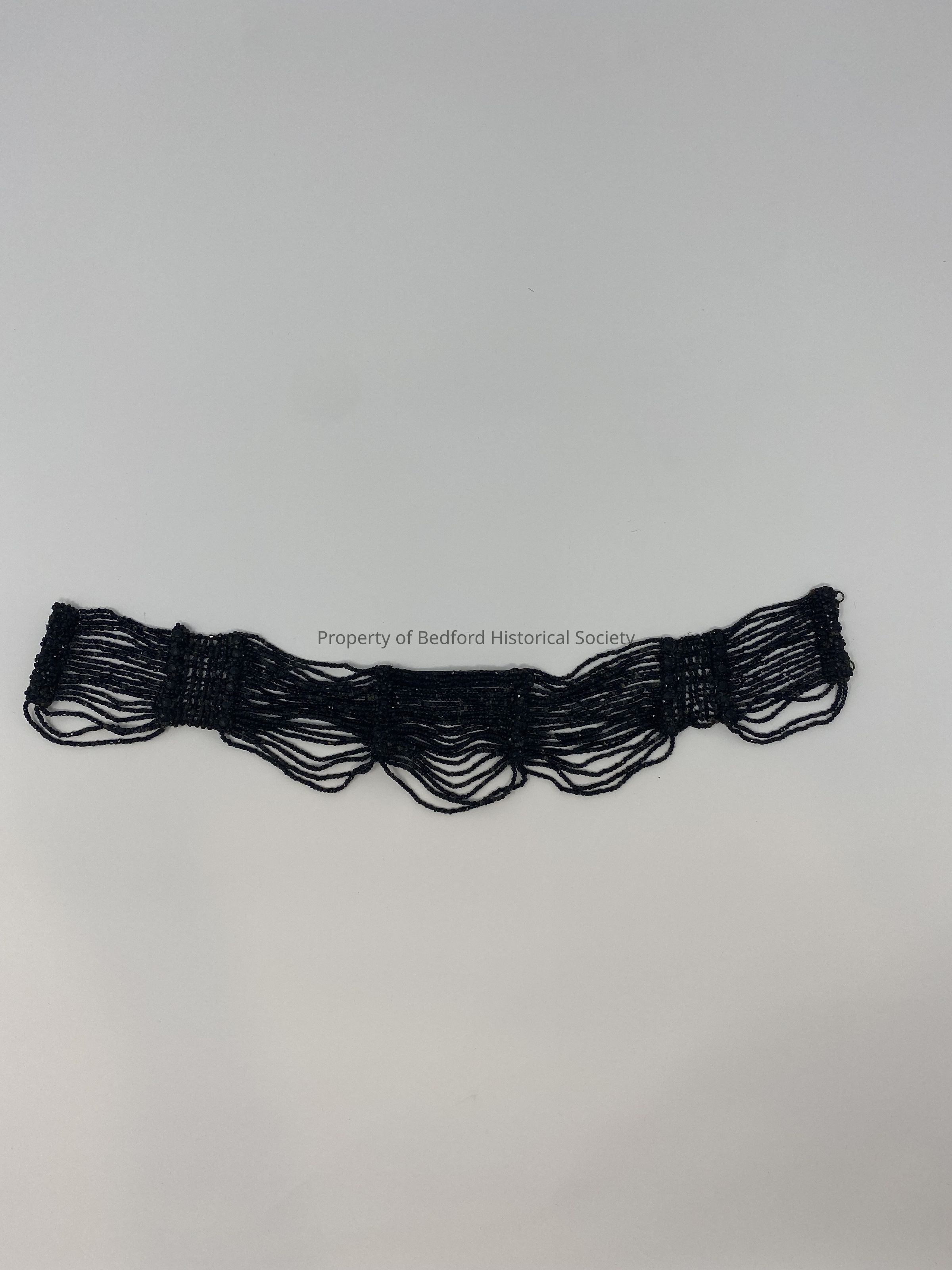 black beaded choker necklace having festoon-like shape across bottom 12.5" long