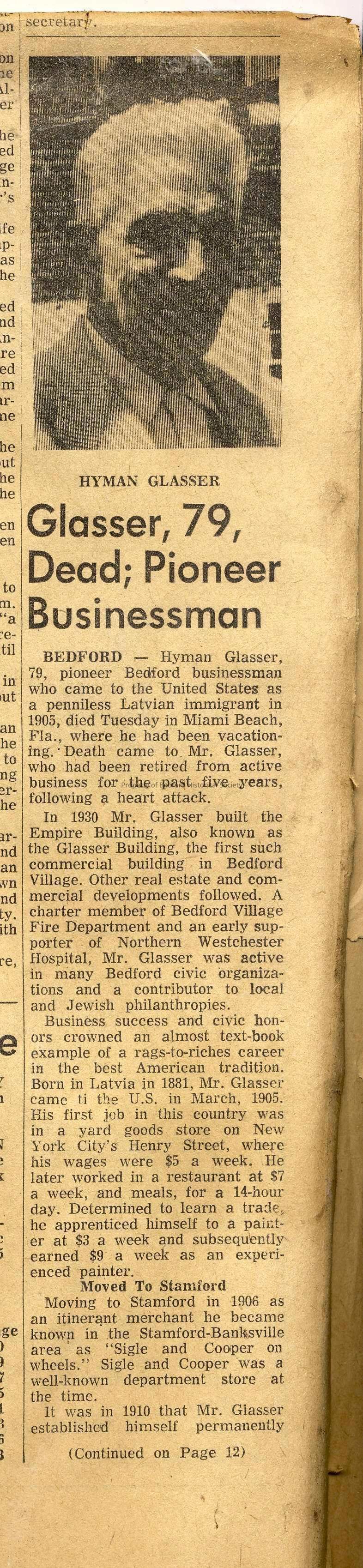 Obituary for Hyman Glasser, Patent Trdaer, Dec. 19, 1960