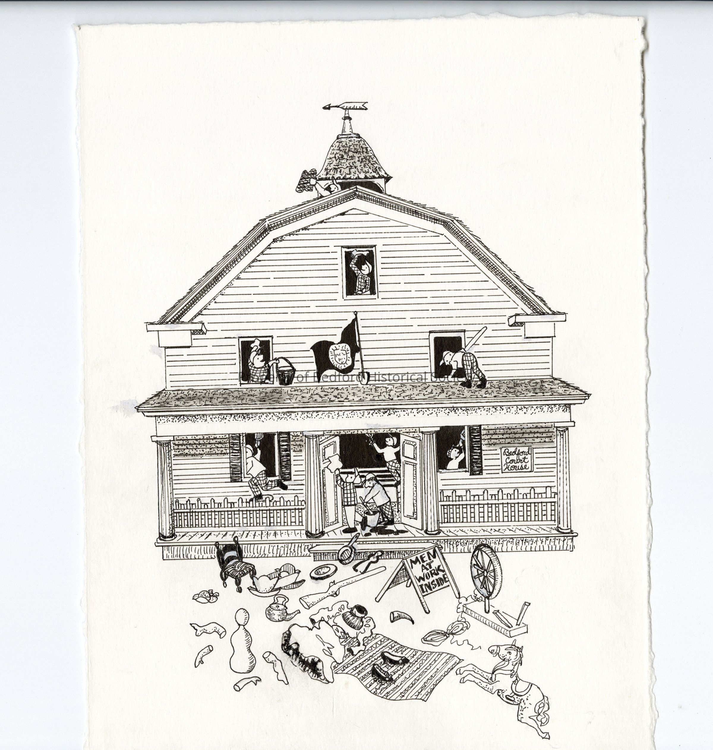 Original cartoon drawing of exterior of court house by Kathy Barnerell