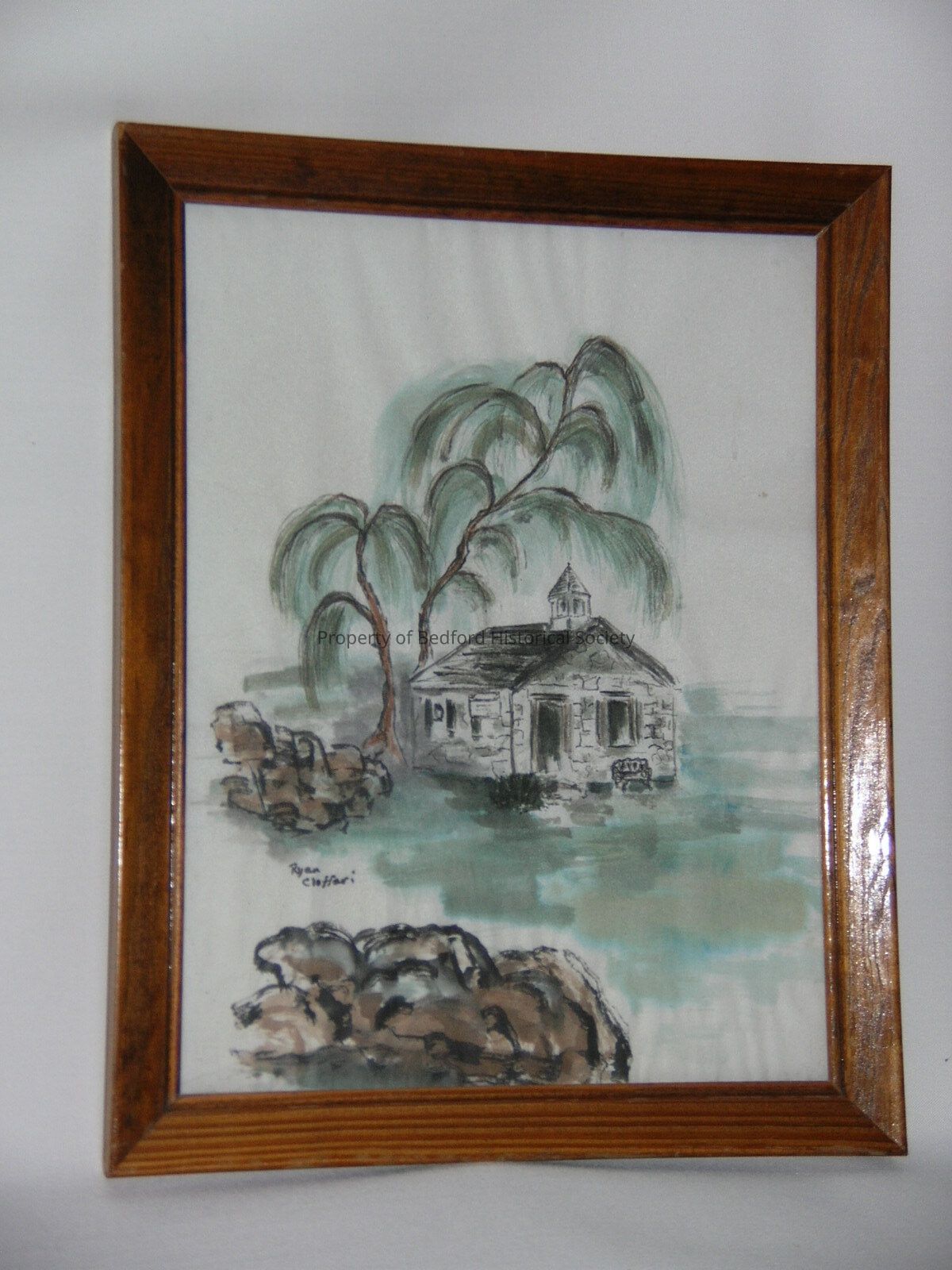 Painting- watercolor on rice paper (dry mounted). By: Ryan Cioffari, title: "Going to School" (Bedford Village). Painted at age 15. *deframed in August 2022 and rehoused in archival folder
