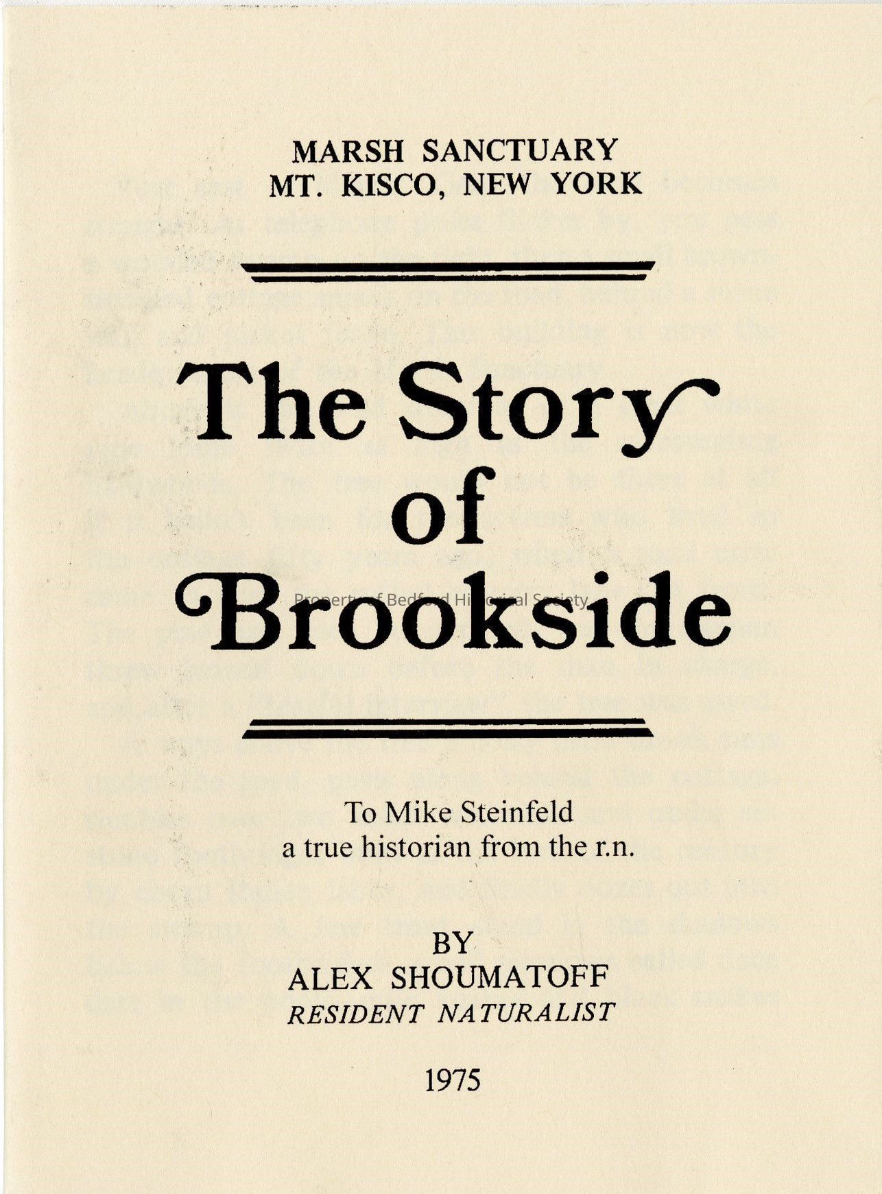 The Story of Brookside by Alex Shoumatoff resident naturalist, 1975