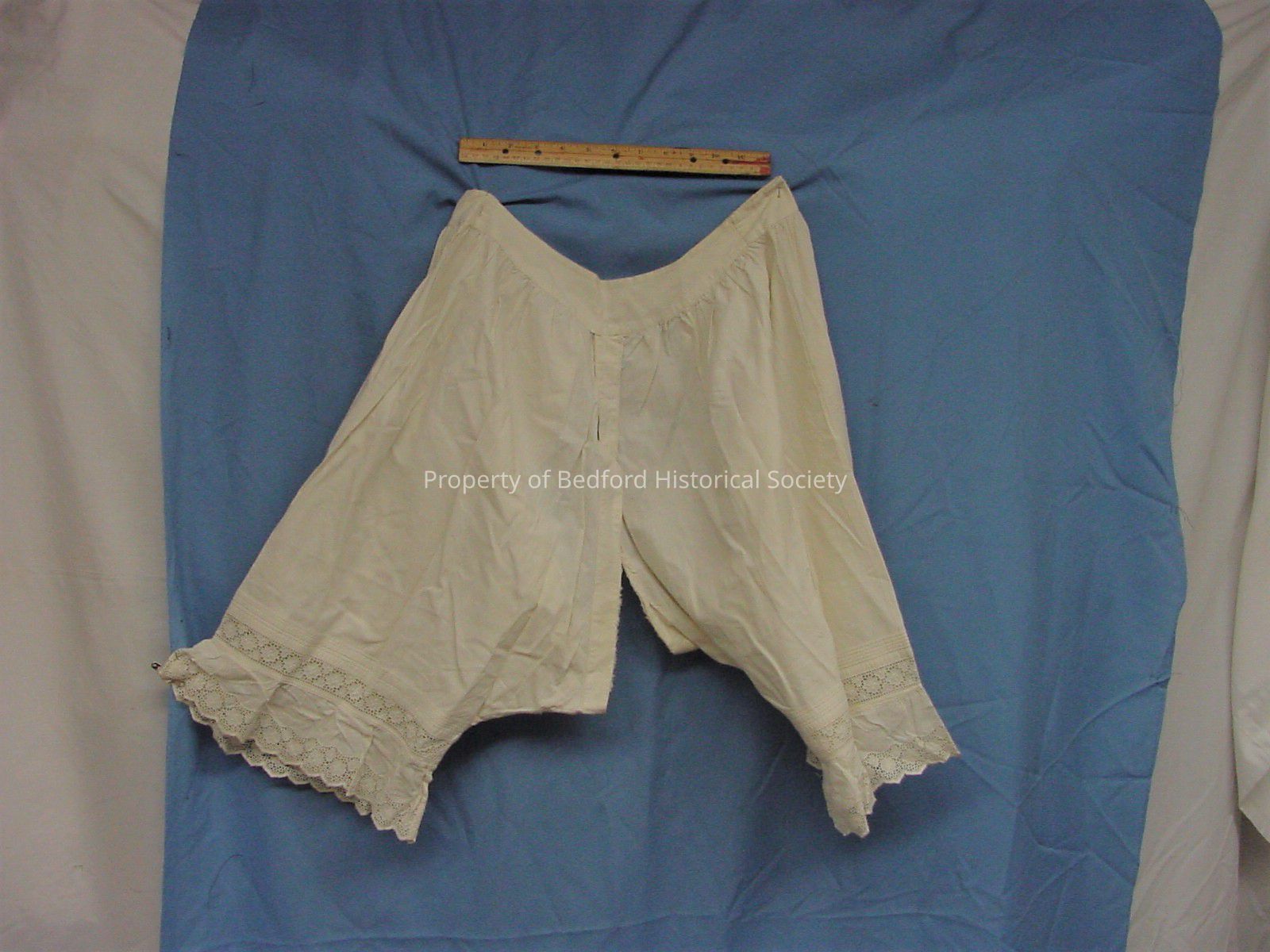 Split drawers, turn of the century, trimmed with narrow tucks and broderie anglaise