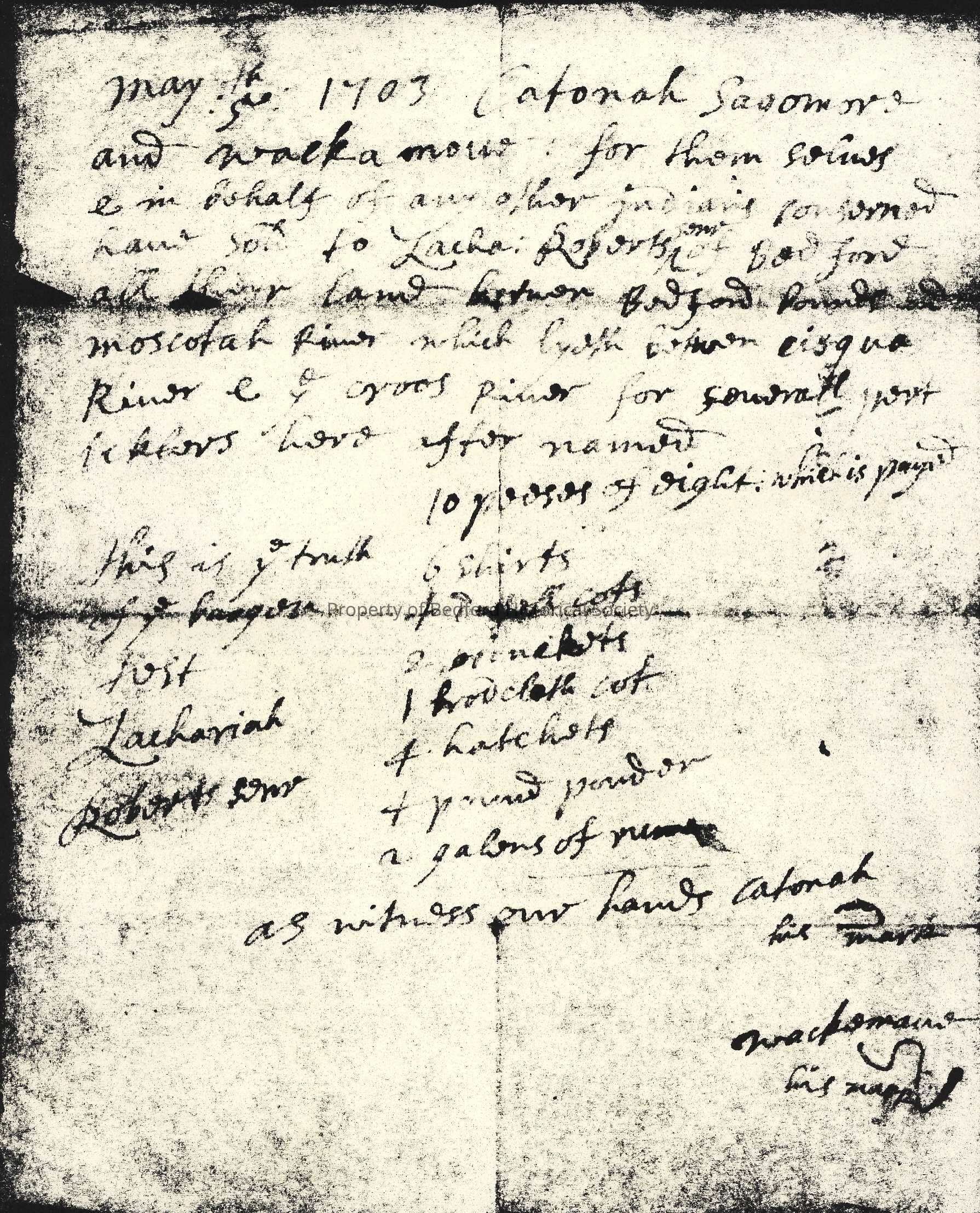 Photocopy and transcription of Land Deed signed by Chief Katonah, 1703