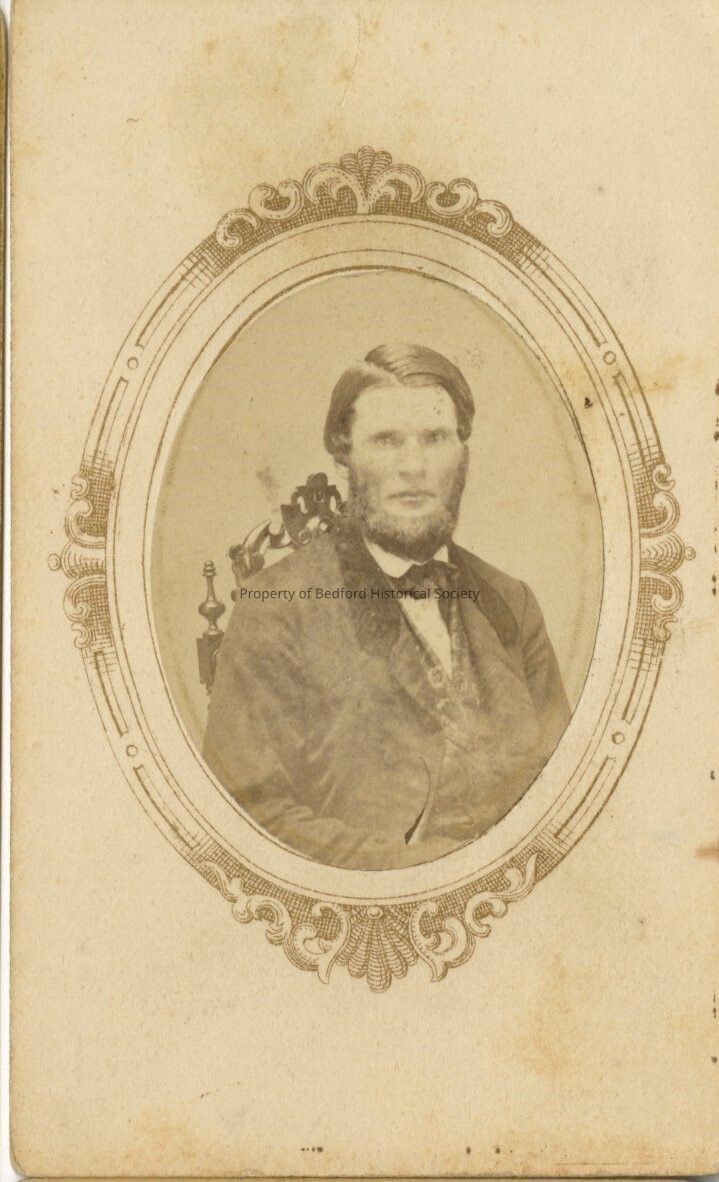 B + W photo of man with beard, matted in oval frame with decorative border surrounding photo part of Gardner/Sarles Collection