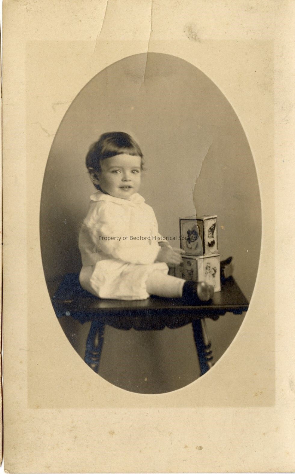 photograph of Charles Wood Avery (1918-2003) as a baby, sitting on a table with blocks.