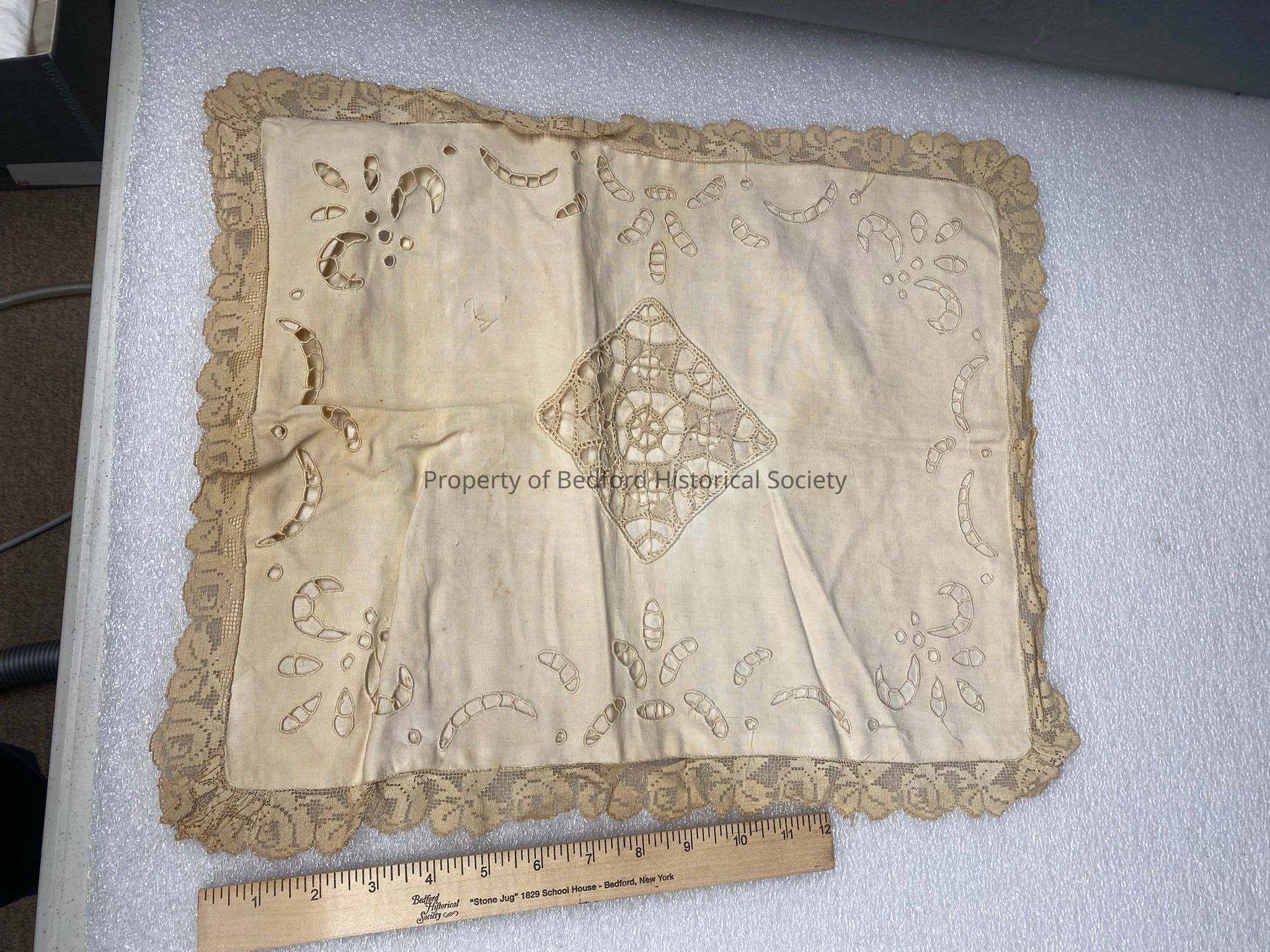 pillowcase with openwork, Unaccounted for on paper inventory found on box.