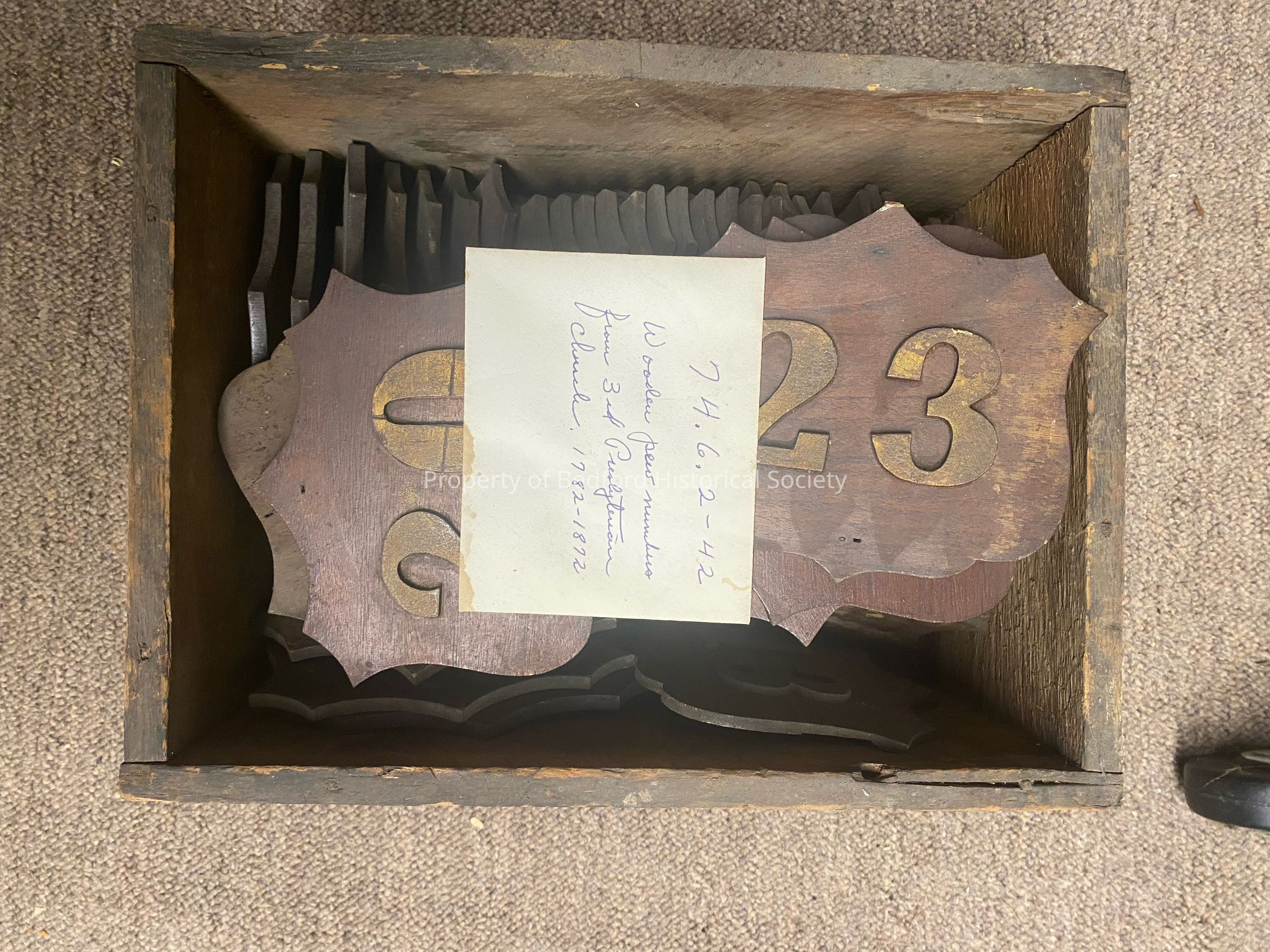 42 wooden plaques for pew numbers used at 3rd Presbyterian Church