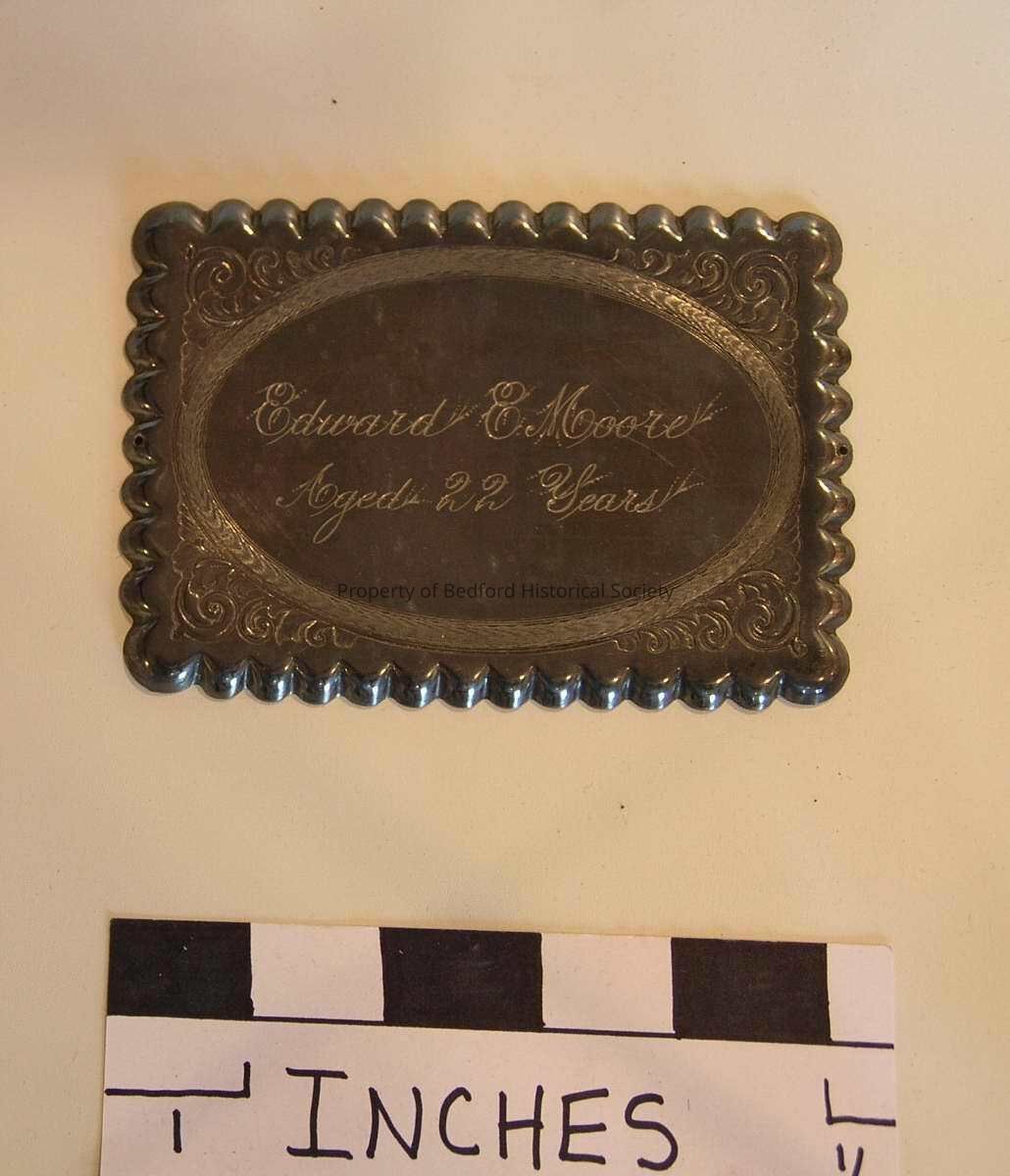 Coffin plate reading: "Edward E. Moore, Aged 22 Years" Early/mid nineteenth century